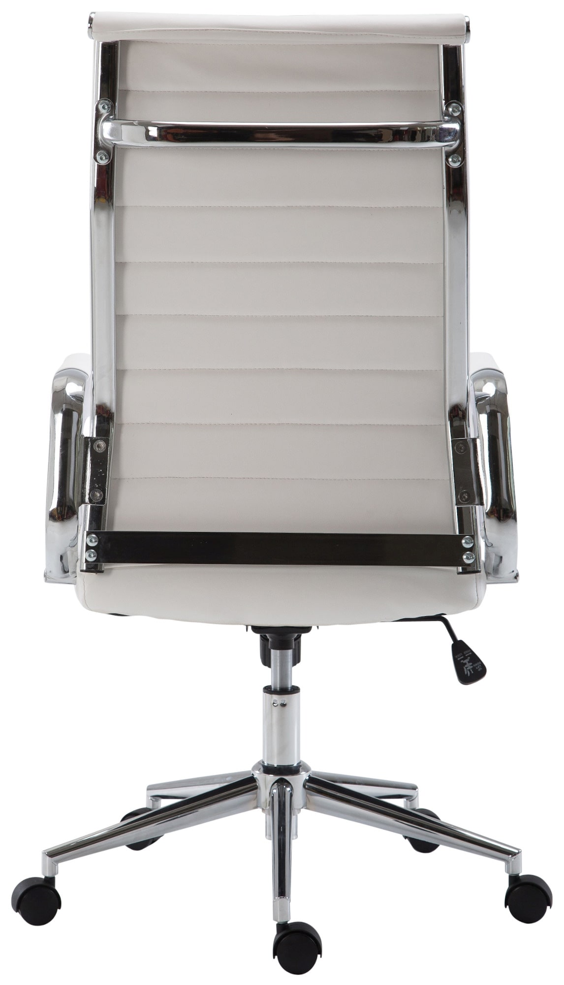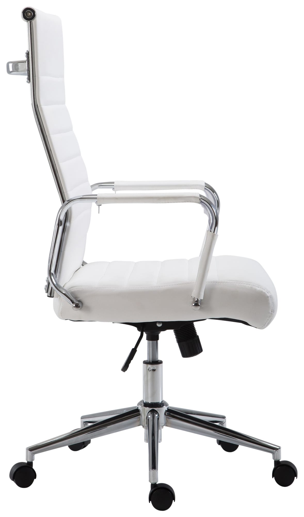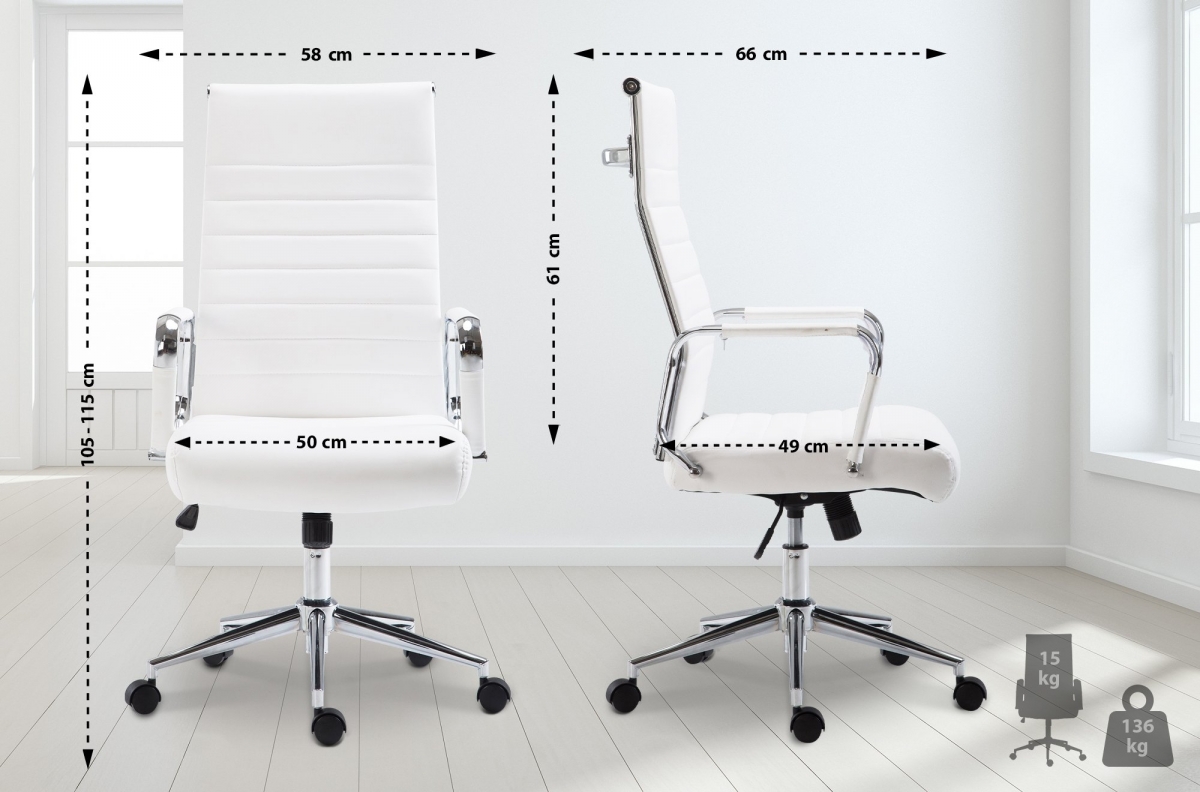 Moderní kancelářské křeslo s vysokým opěradlem a kvalitním koženkovým potahem. Nastavitelná výška, chromovaná podnož s kolečky a ergonomický design zajišťují maximální komfort při práci. Nosnost až 136 kg.