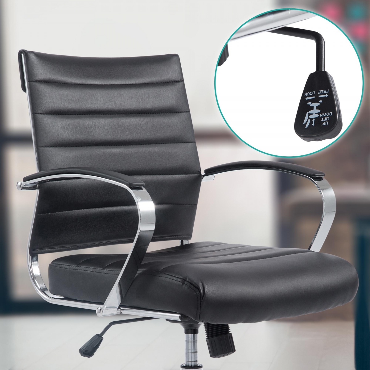 Ergonomické kancelářské křeslo Oakland s nastavitelným sedátkem a opěrkou zad pro maximální komfort během práce. Stylový design z pravé kůže/umělé kůže/látky s chromovým rámem a kolečky pro flexibilní použití v každé kanceláři.
