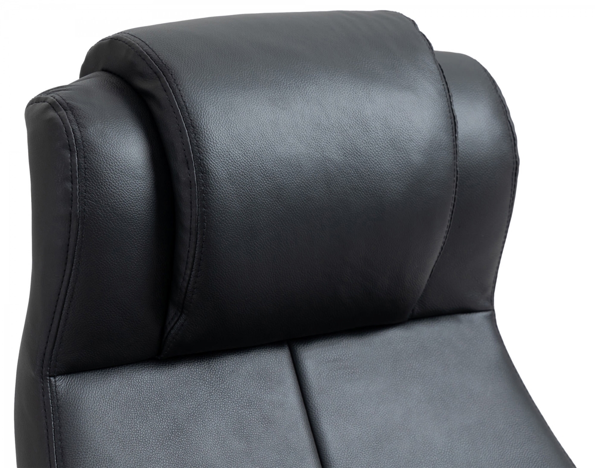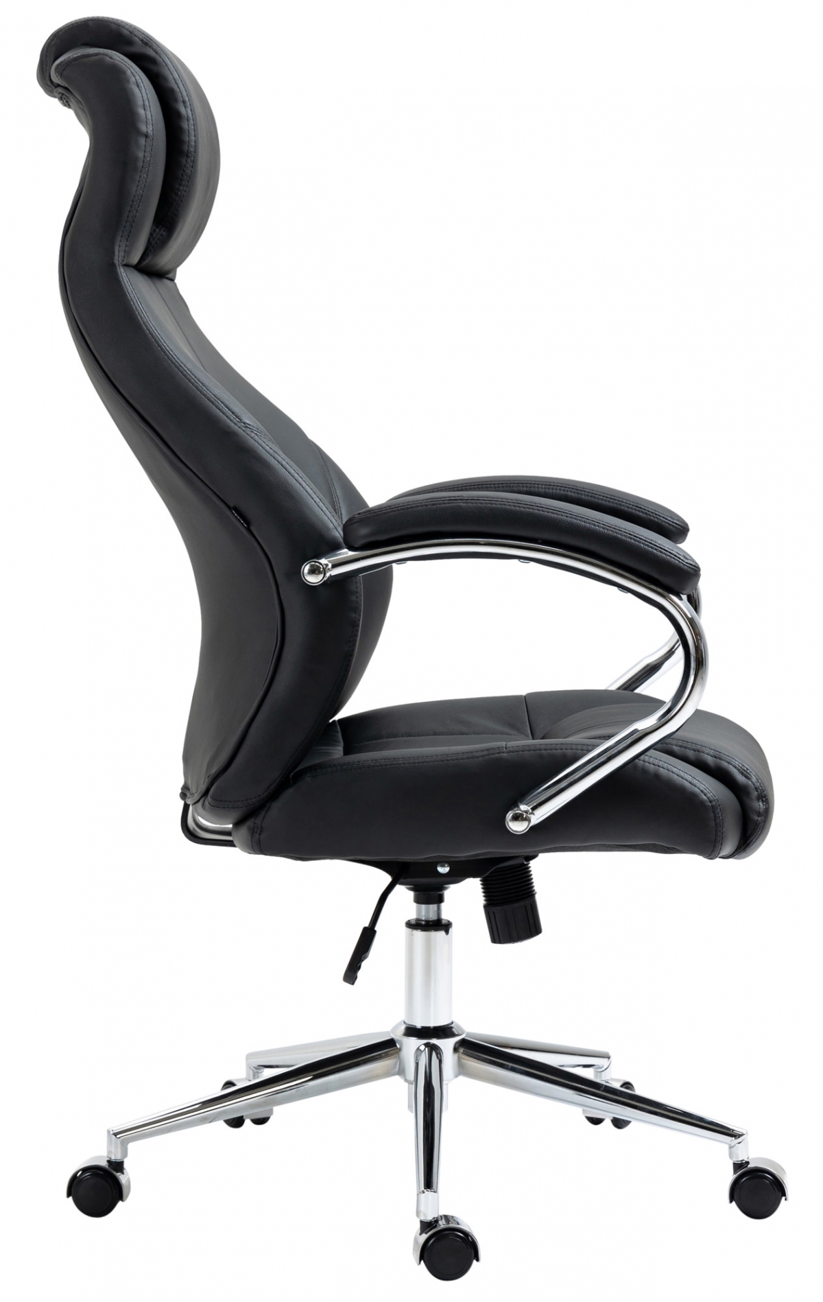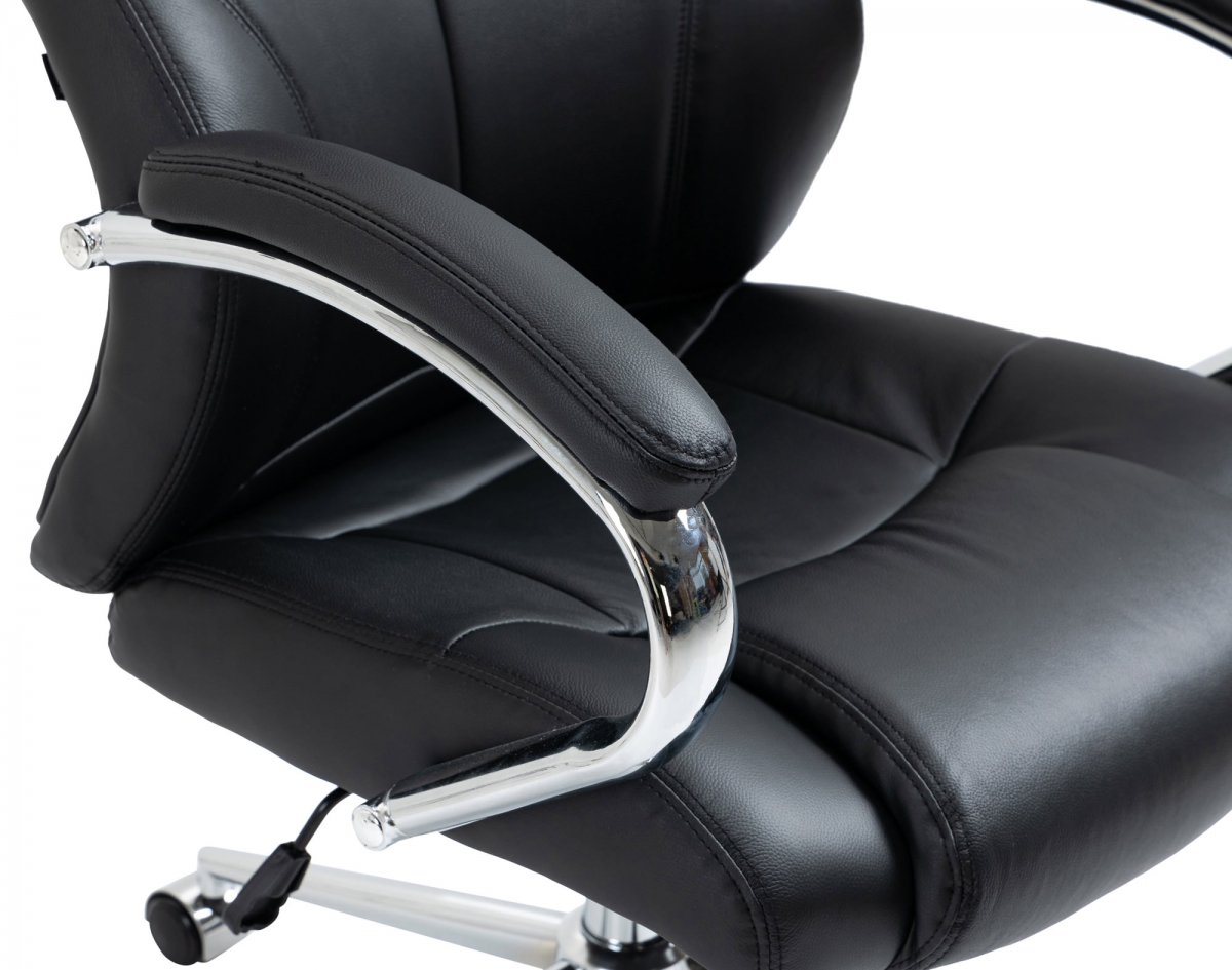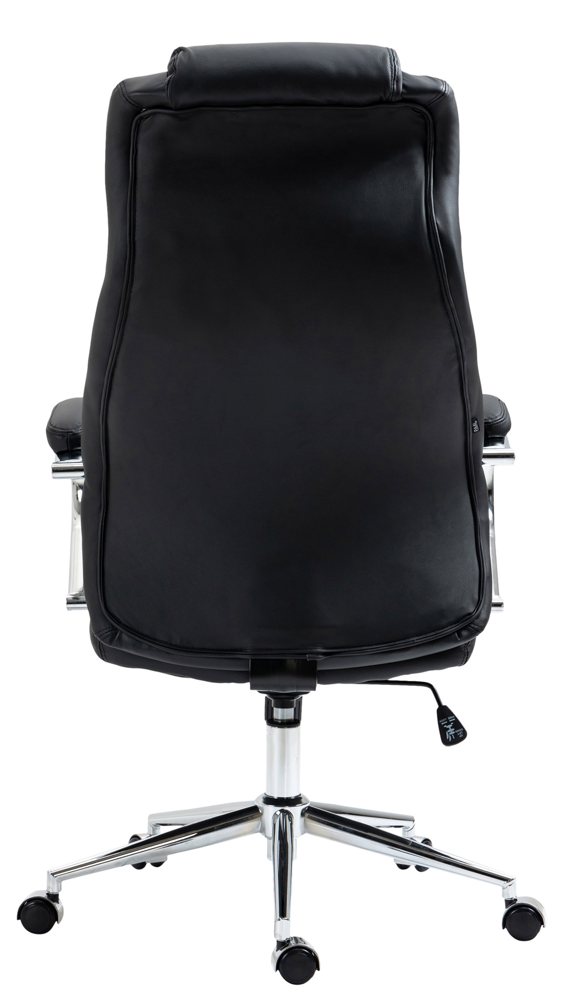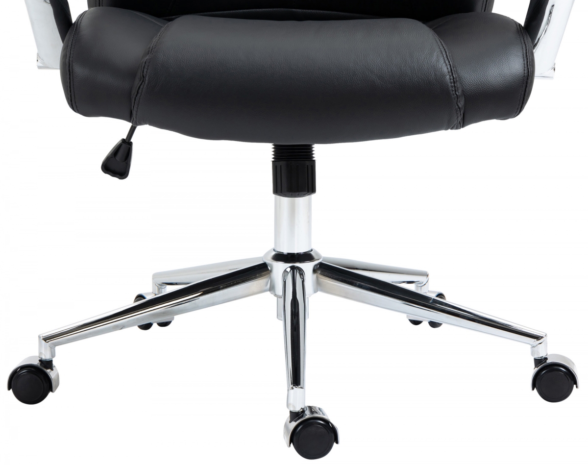 Potah má potah z pravé kůže z kvalitní odolné hovězí kůže a kostra židle je z kovu s chromovým vzhledem. Díky pěti pohyblivým plastovým kolečkům s hladkým chodem umožňuje otočná židle pohyb v pracovní oblasti bez námahy. Kancelářská židle se dá flexibilně nastavit ve výšce sedáku a napnutí houpacího mechanismu.