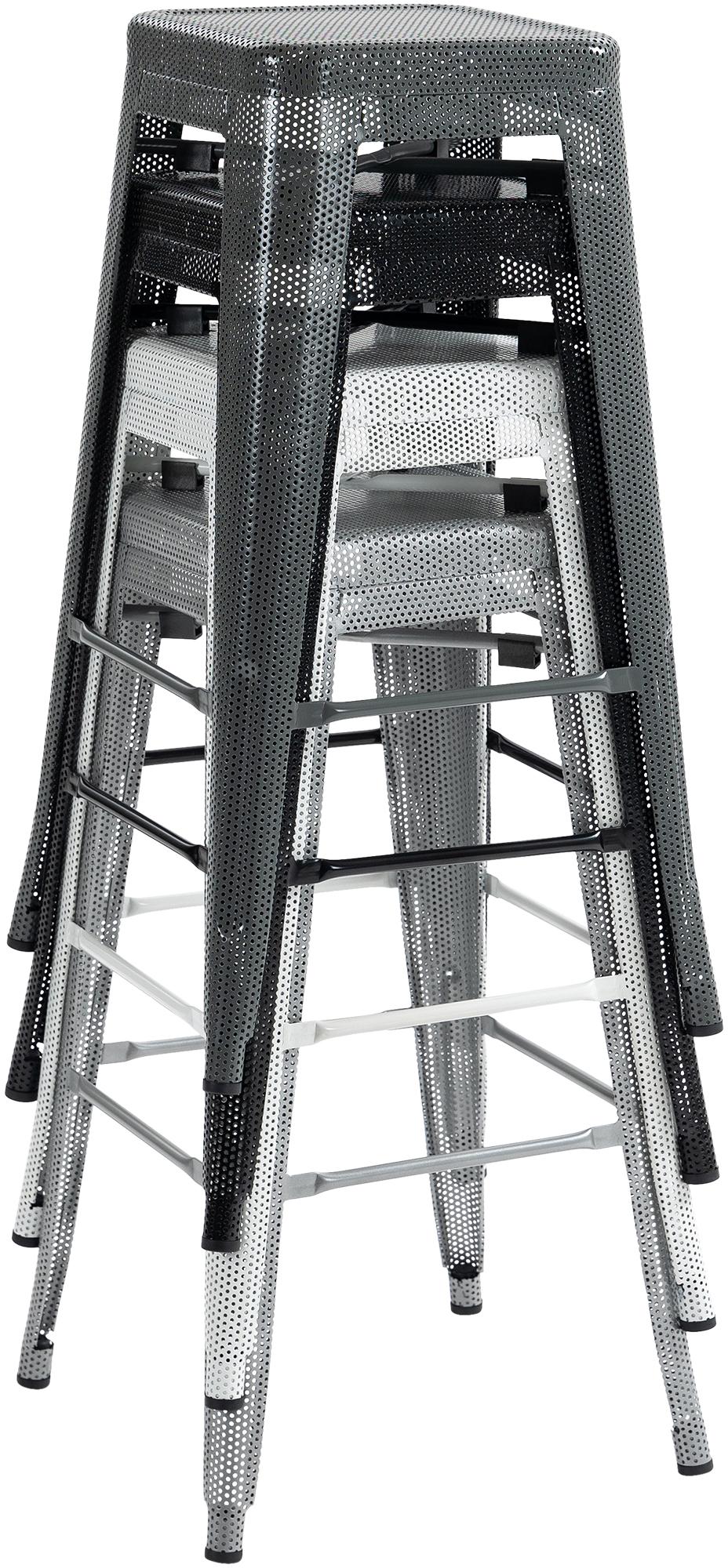 Stohovatelná židle s perforovaným kovovým rámem nabízí vizuální lehkost a stabilitu s nosností až 120 kg. Industriální design, opěrka nohou a snadná údržba ji dělají ideální volbou pro moderní domácnosti i gastro sektor.
