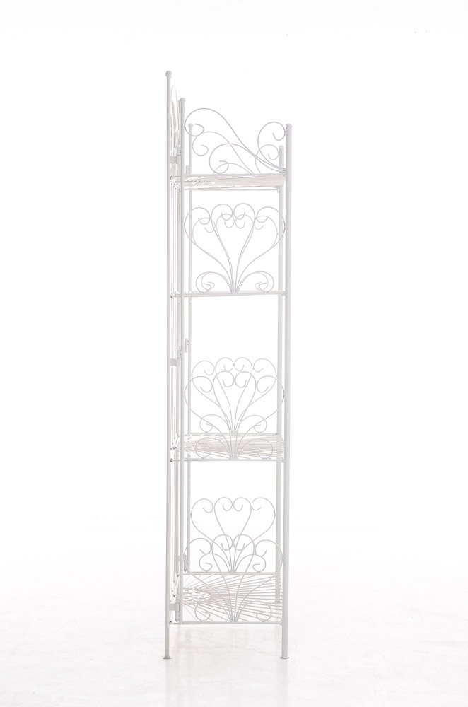 Robustní železná police regál ve venkovském stylu s kvalitním práškovým nástřikem. Stabilní konstrukce se 4 policemi a dekorativními prvky pro starobylý vzhled. Rozměry: 61,5 x 33 x 153 cm, lehce skladatelná.
