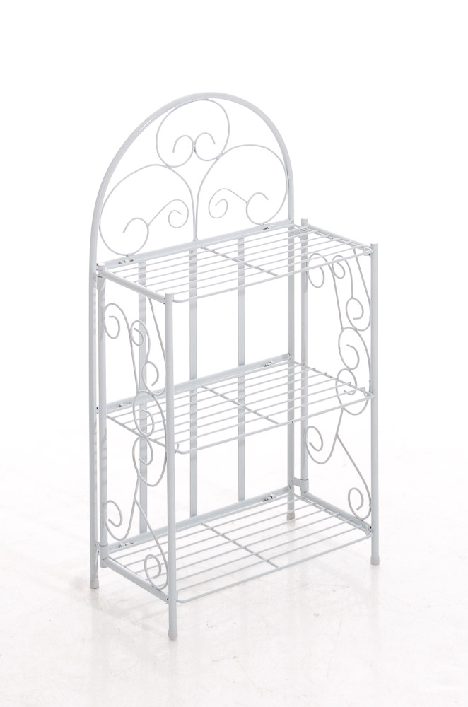 Kvalitní železná police ve venkovském stylu s práškovým nástřikem. Stabilní konstrukce, 3 úložné prostory, rozměry 45,5x24x81,5cm. Ideální pro starobylý interiér, lehce skladatelná.
