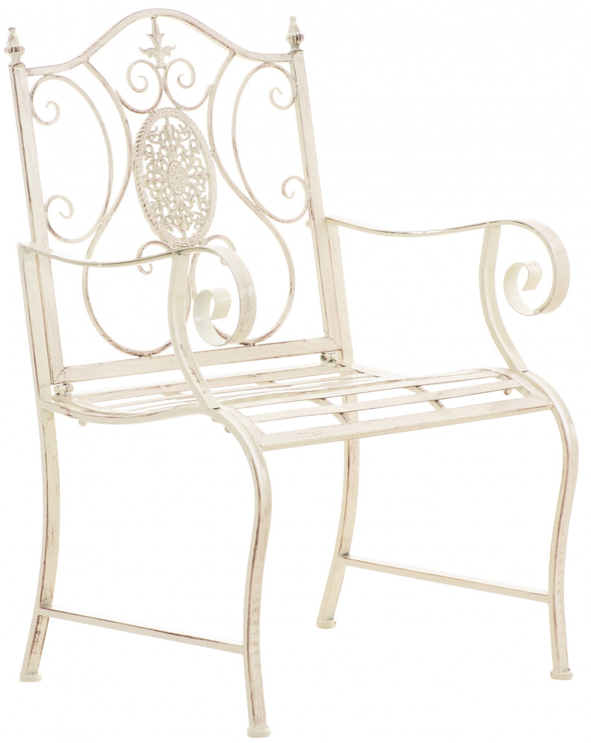 Výrobek je vyroben ze železa s povrchem ve starožitné patině. Židle se dokonale hodí k naší nabídce stolů.