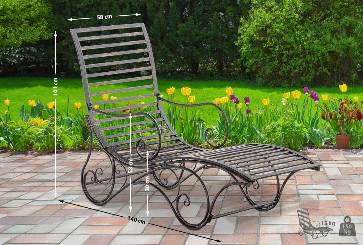 Luxusní zahradní lehátko Amiens ve starožitném stylu nabízí pohodlné relaxování na terase či v zahradě. Toto exkluzivní železné lehátko s nostalgickým designem a ručně vyráběnými detaily je ideální pro odpočinek a zkrášlí každý exteriér i interiér.