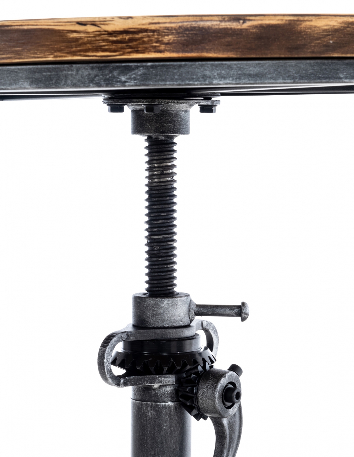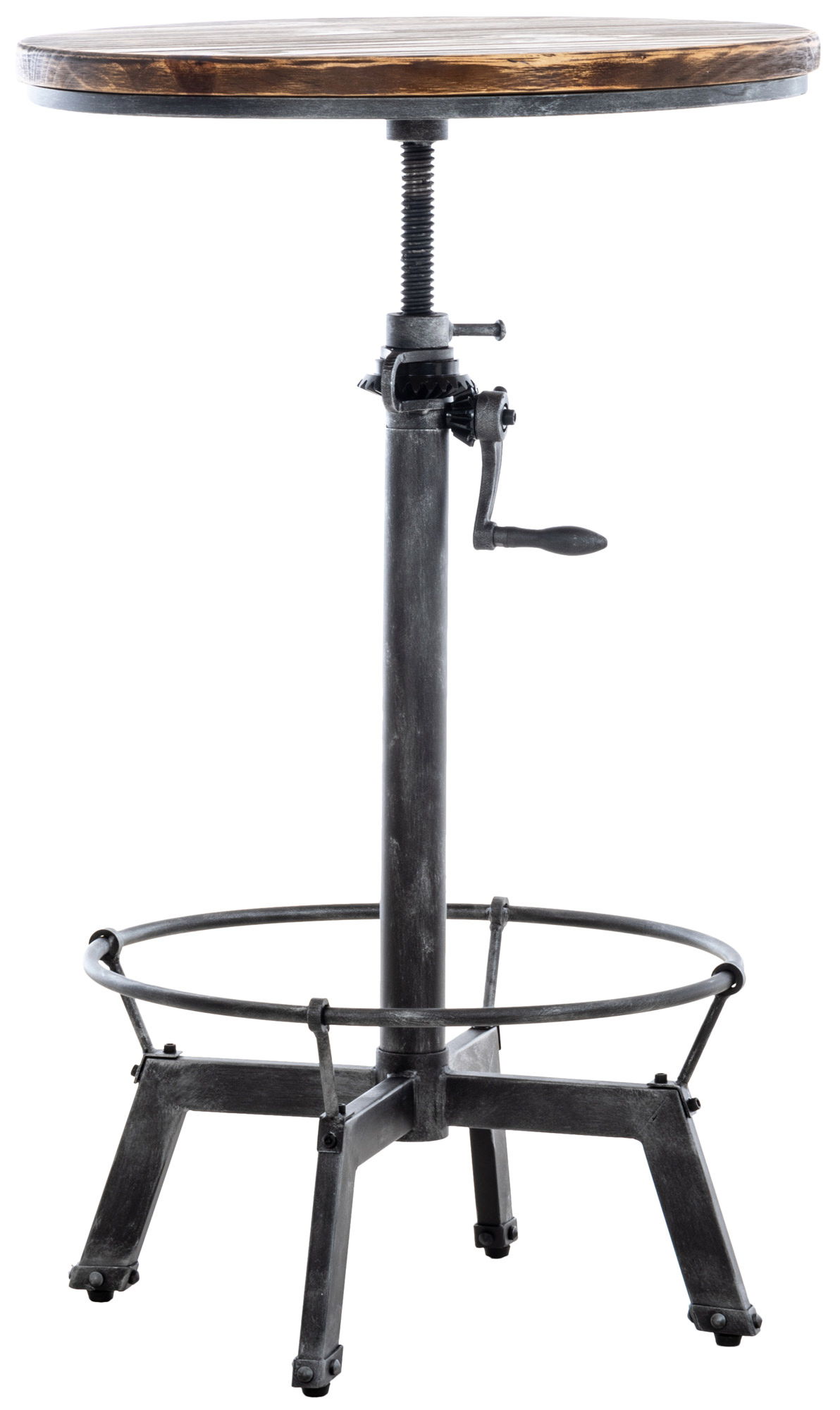 Stylový kovový barový stůl v industriálním designu hydrantu s výškově nastavitelnou deskou. Kombinace masivního dřeva a kovu dodává vzrušující průmyslový vzhled vhodný do obytných i komerčních prostor. Kvalitní zpracování a pevný rám zaručují stabilitu.