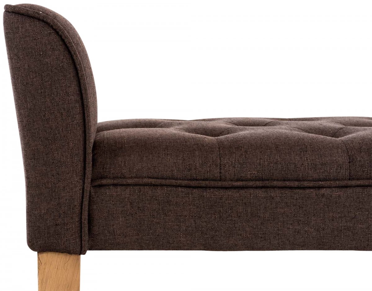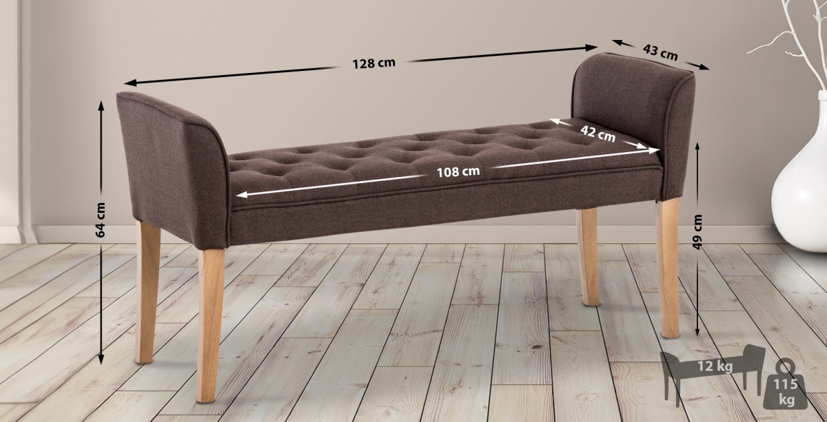 Dřevěné nohy lavice krásně ladí s pohodlným látkovým potahem s nádherným prošíváním. Lavice spojuje pohodlí a dokonalý design.