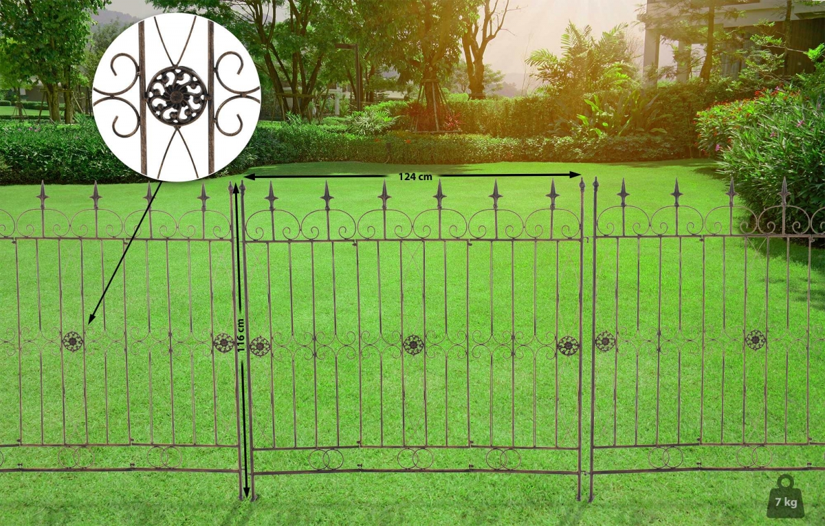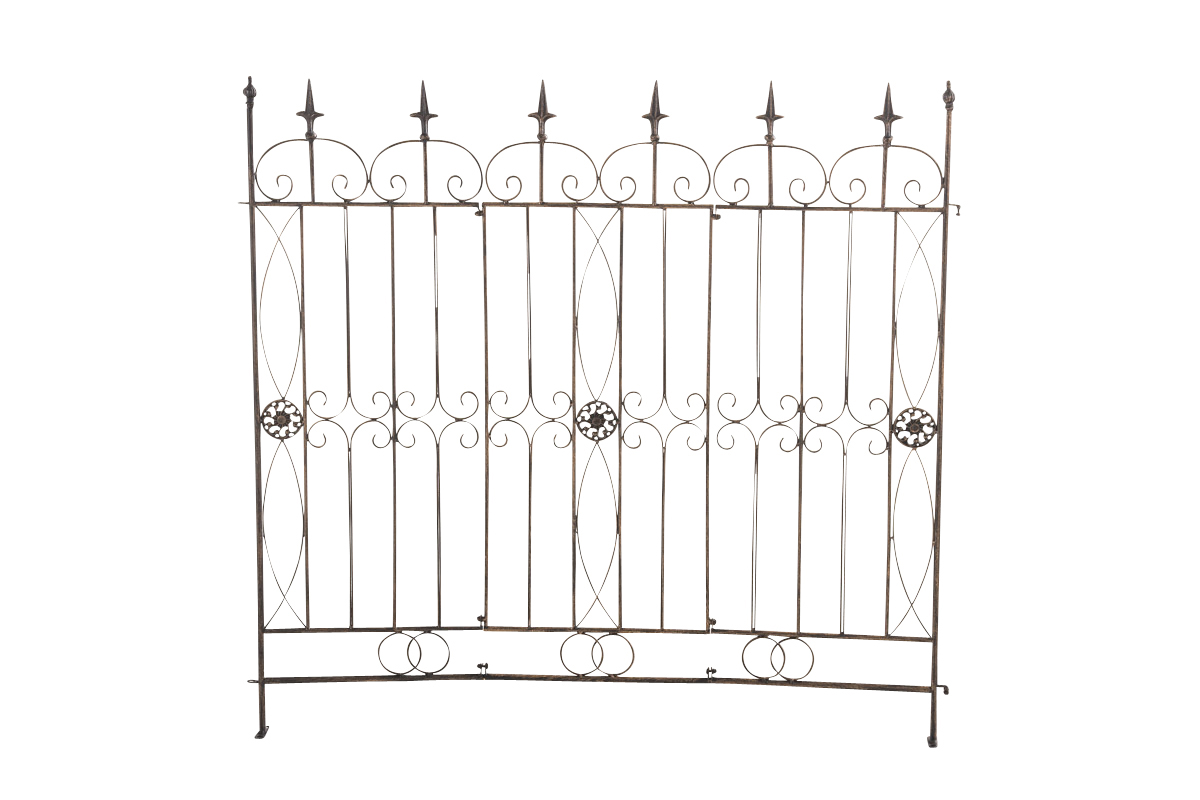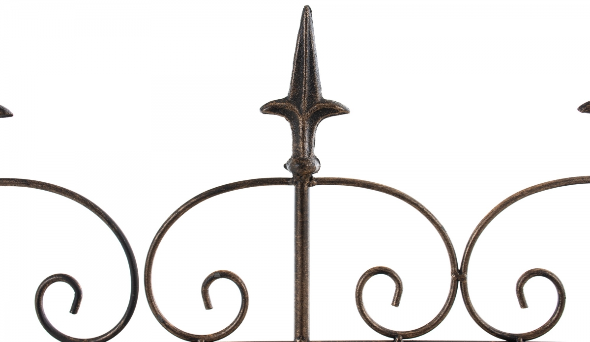 Jedinečná kovová mřížka v rustikálním venkovském stylu s klasickým designem a krásnými dekoracemi. Skládá se ze 3 částí, které lze libovolně prodloužit. Rozměry: 125x115 cm, hmotnost 7 kg.