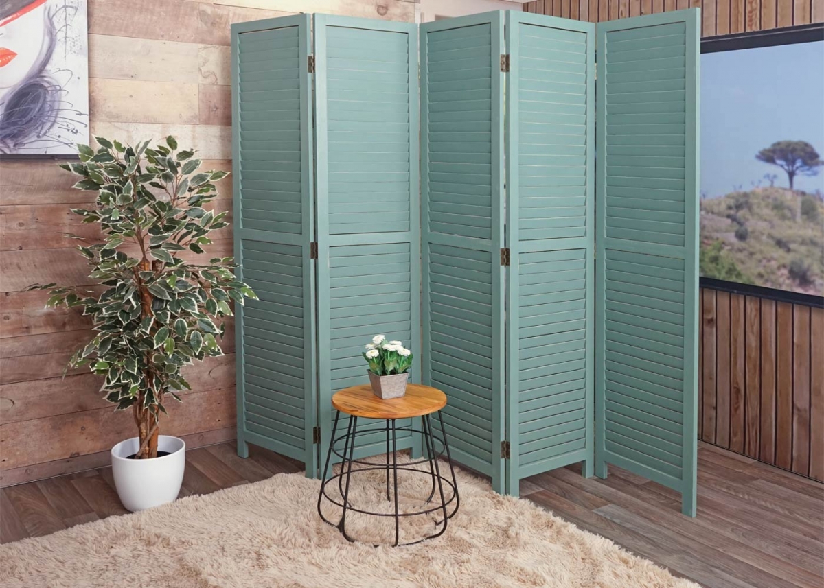 Paraván je vybaven 5 panely, které lze jednoduše složit, aby se ušetřilo místo.