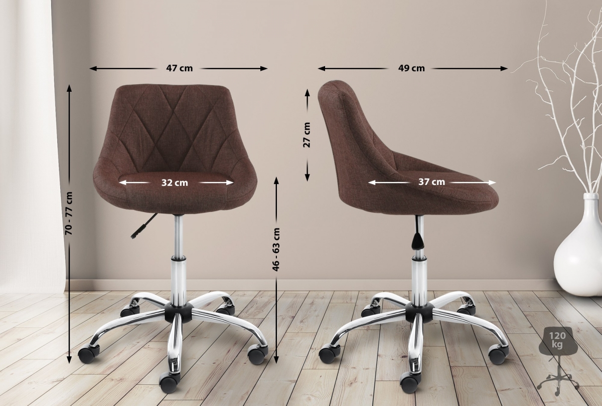 Pracovní stolička je pohodlná sedačka - ideální do ordinací, masážních a kosmetických salonů. Čalouněný sedák je k dispozici s potahem ze syntetické kůže nebo textilie a je obzvláště pohodlně polstrovaný, opěradlo poskytuje další pohodlí. Otočná židle je výškově nastavitelná pomocí plynového zvedáku a lze ji otáčet o 360°. Bezpečně stojí na pěti kolečkách s hladkým chodem a kovovém rámu v chromovém vzhledu. Bez ohledu na to, zda se jedná o tvrdé podlahy nebo koberce – vždy se můžete snadno a volně válet po podlaze. Jednoduchý, stylový design a robustní materiály, které se osvědčí v každodenním životě.