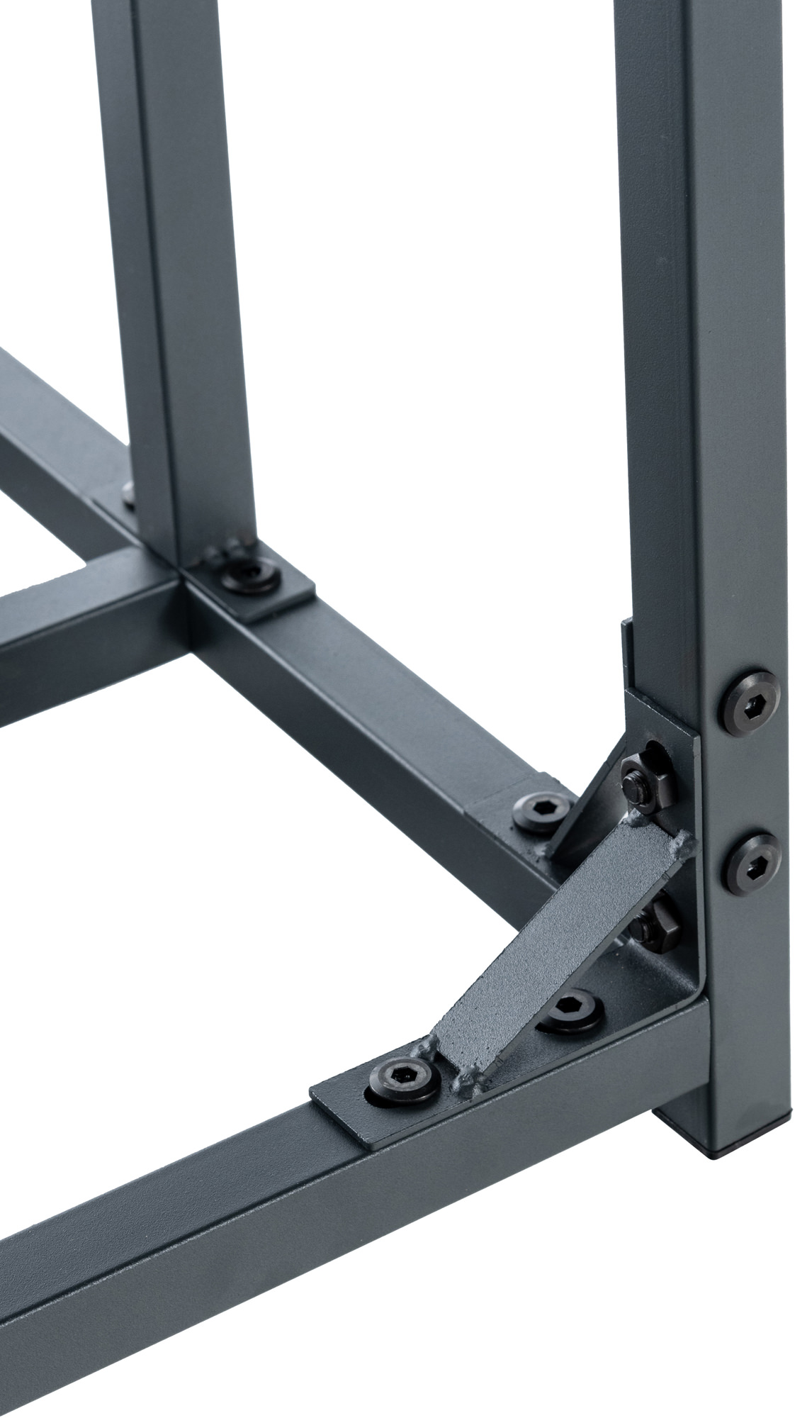 Přístřešek sestává z pevných čtvercových profilů z kvalitní oceli s práškovým nástřikem. Je velmi odolný a vhodný i pro venkovní použití.