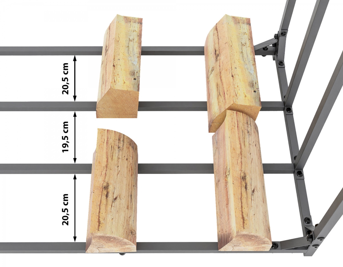 Promyšlená konstrukce je dekorativní a zaručuje bezpečné uskladnění dřeva pro krb.