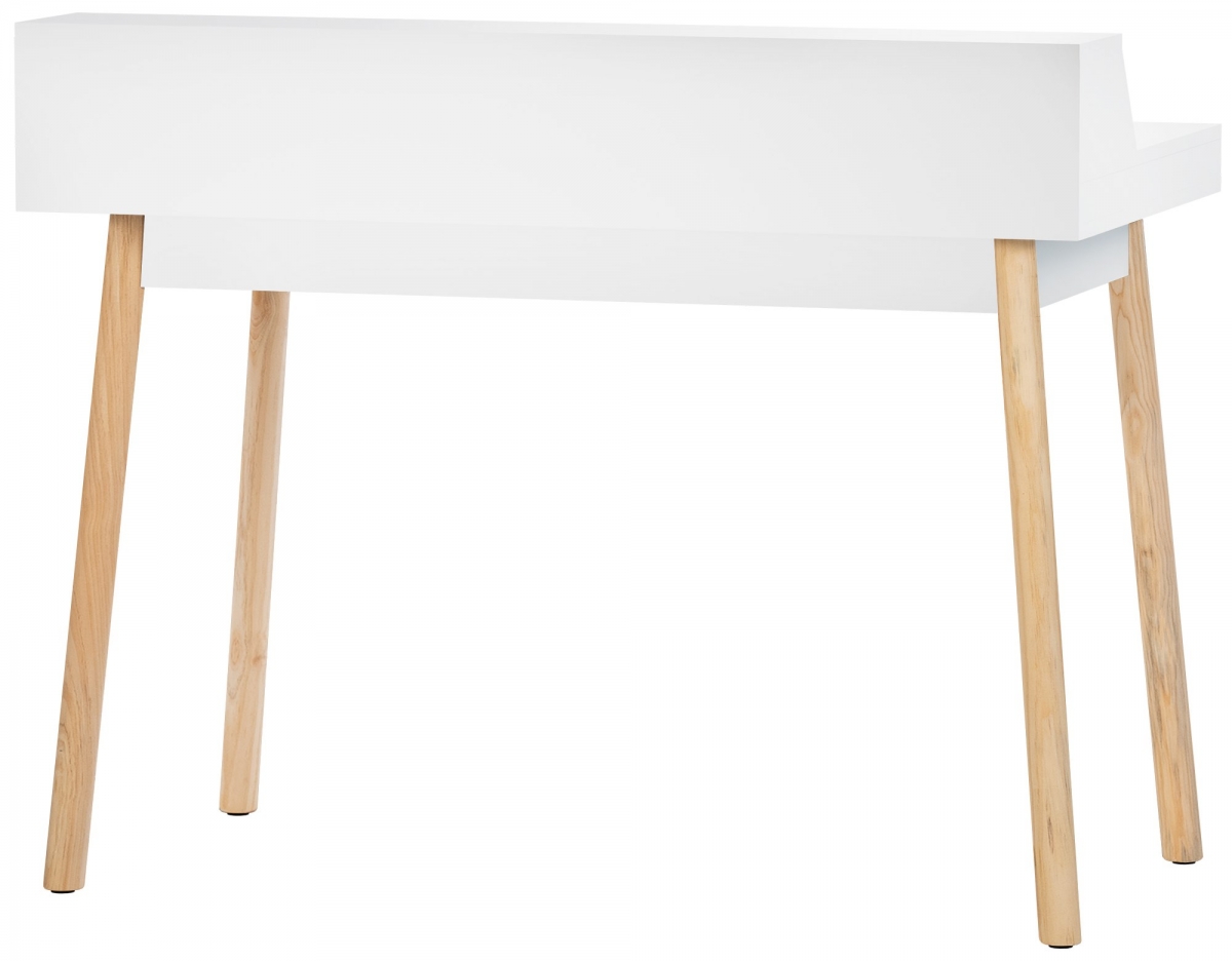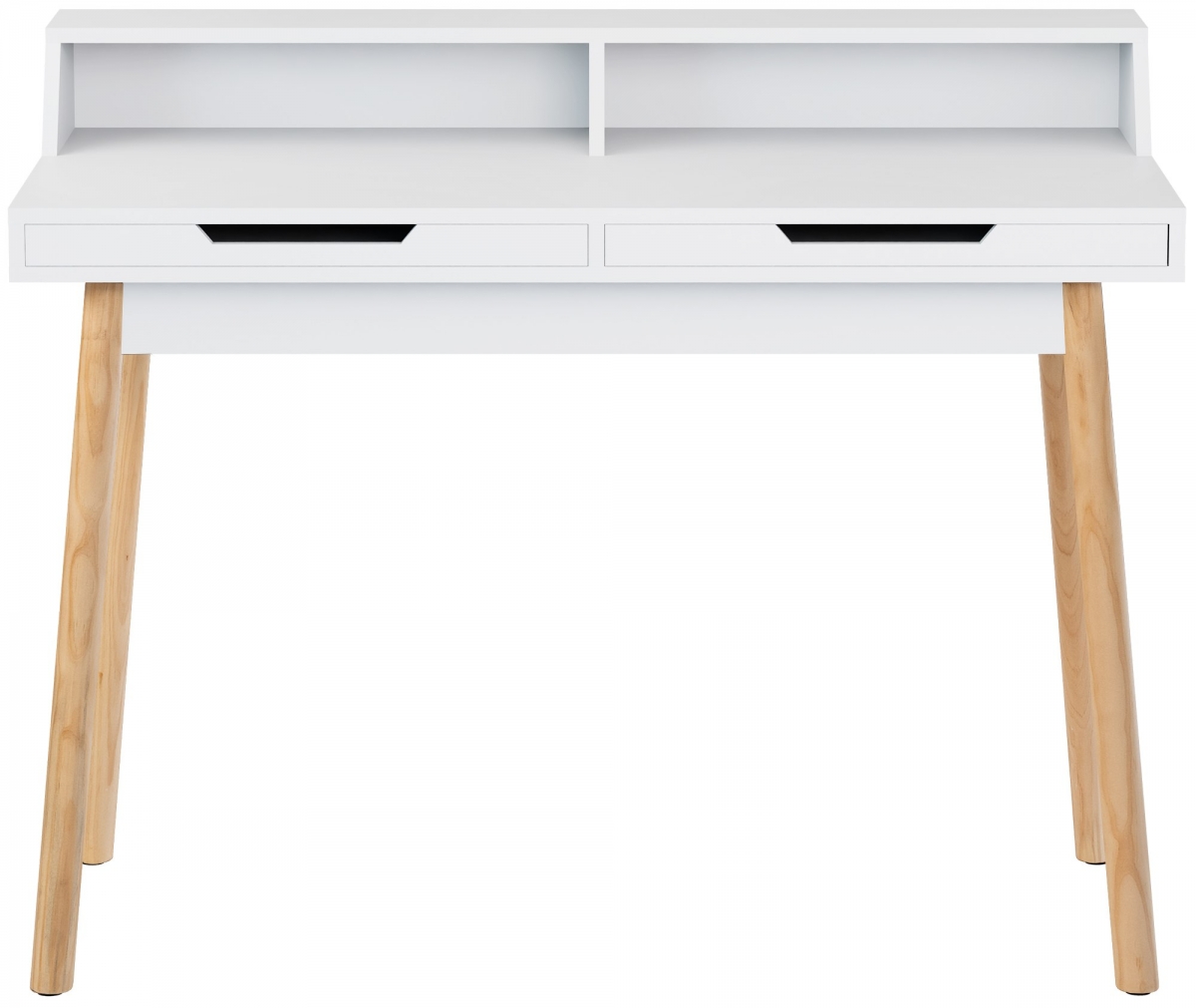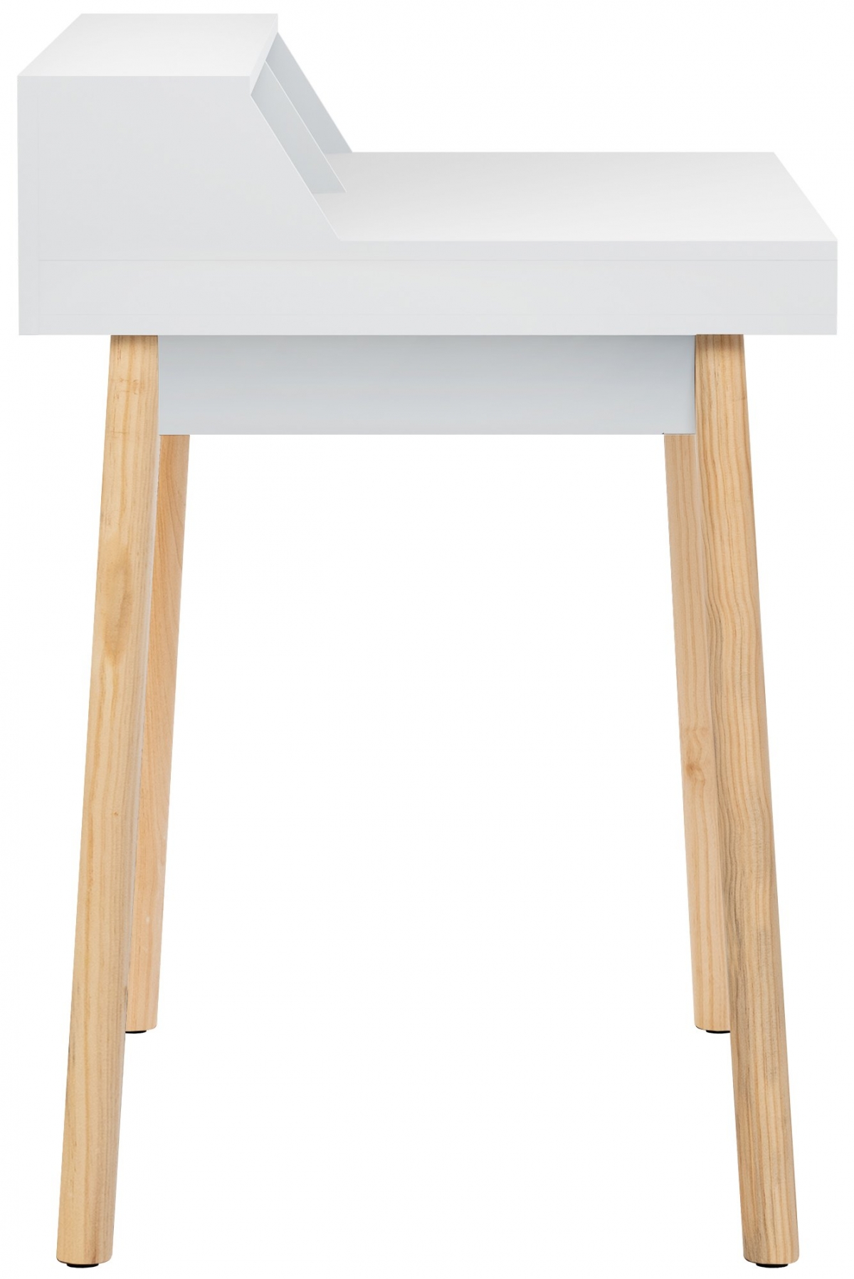 Elegantní psací stůl Eaton kombinuje moderní bílý design s dubovýma nohama. Nabízí velkou pracovní plochu 110x60 cm, praktické zásuvky a úložný prostor. Ideální pro různé styly interiéru.