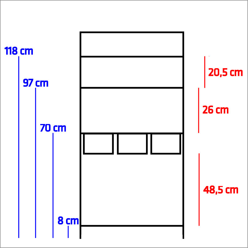 Horní police: 38 x 17 cm