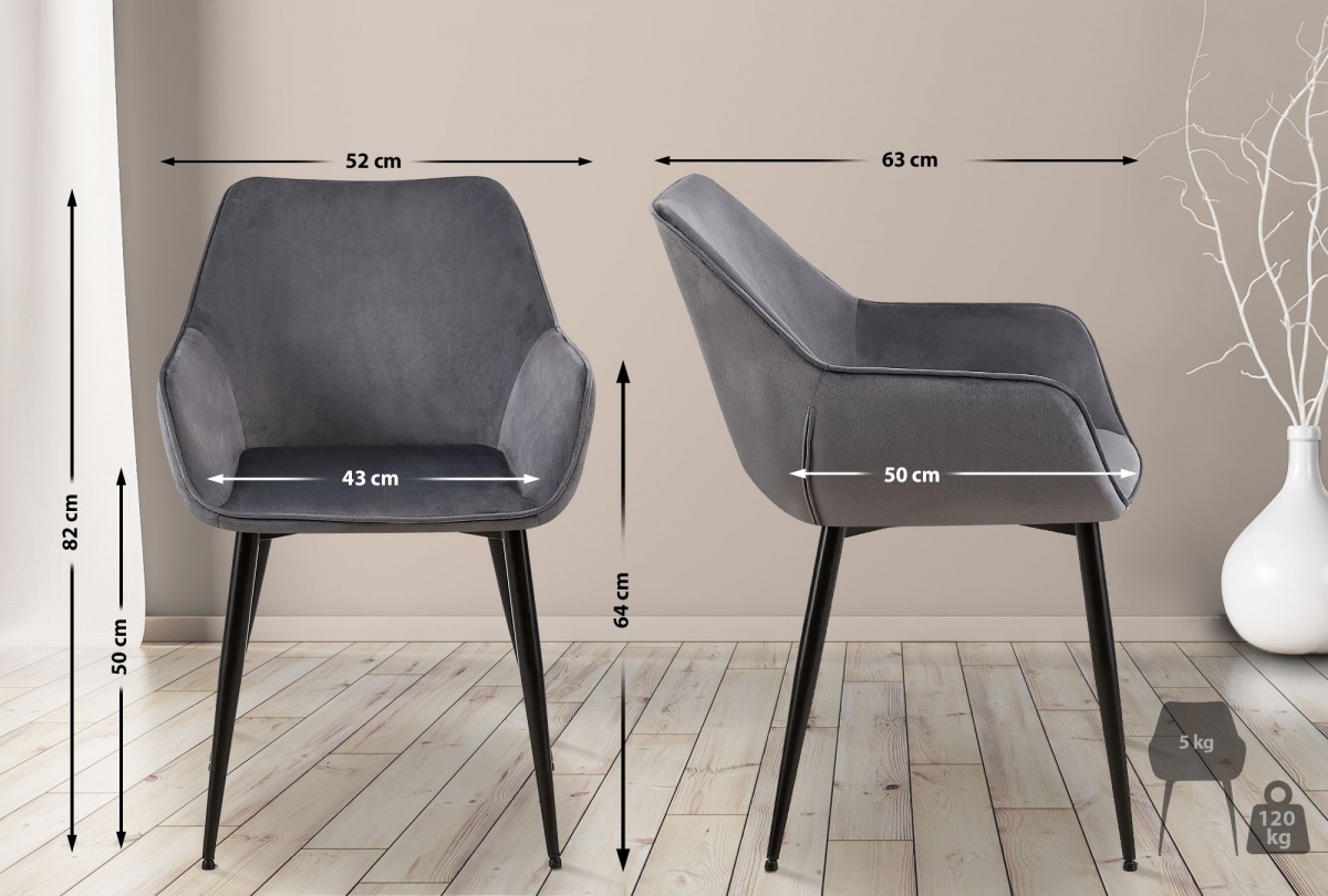 Set 2 jídelních židlí Vessa samet - tmavě šedá