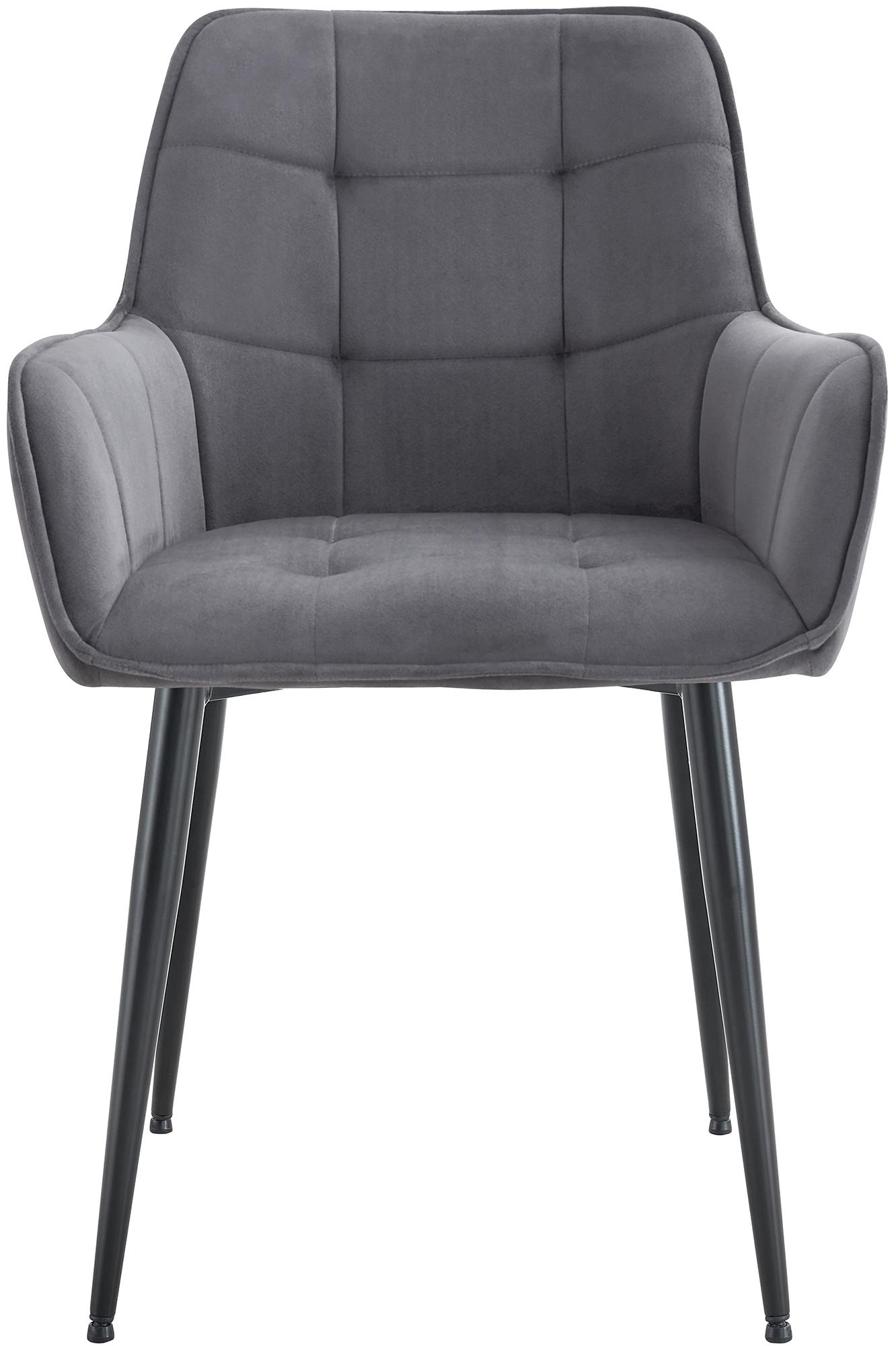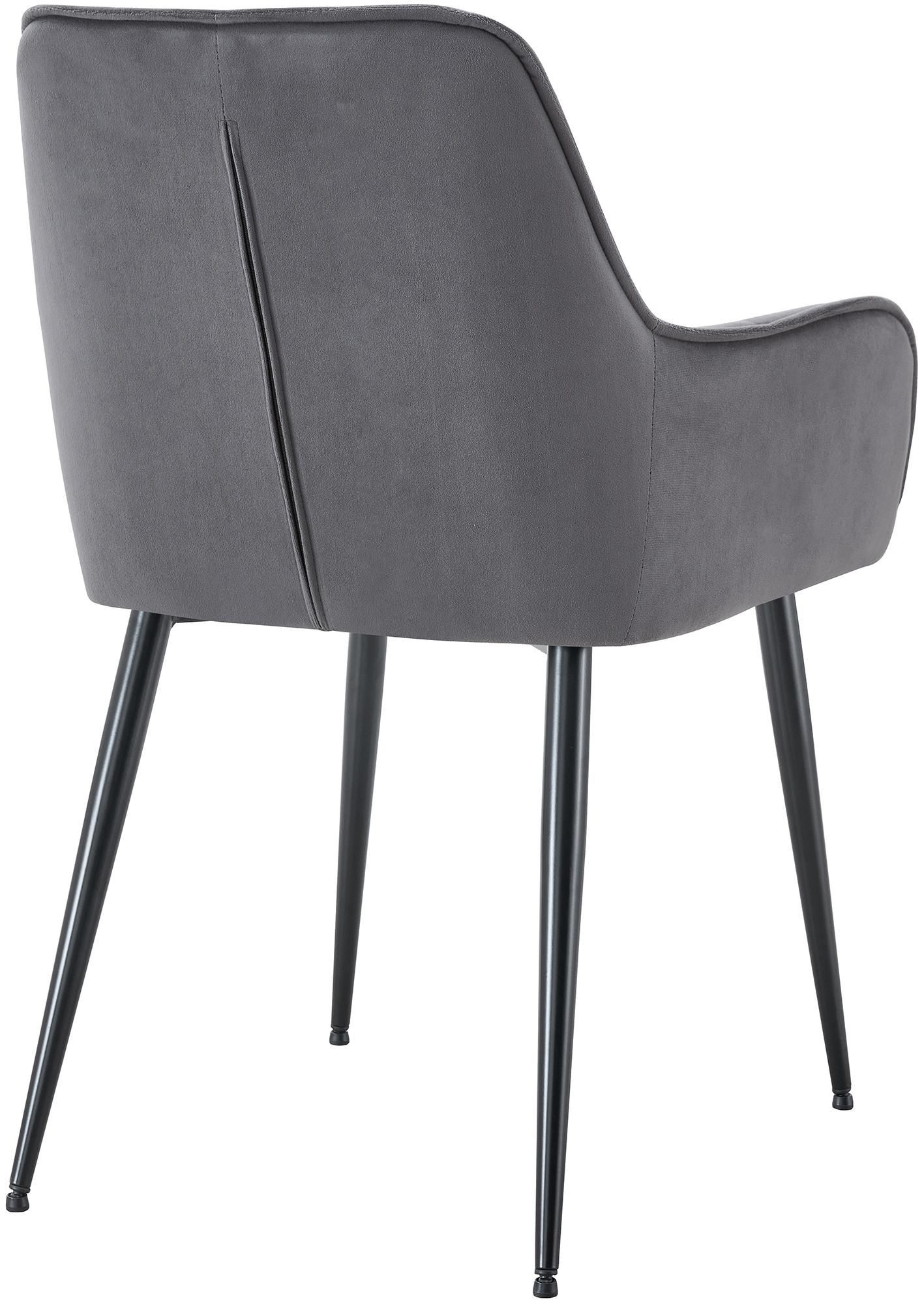 Moderní jídelní židle s pohodlným čalouněným sedátkem a područkami. Sametové čalounění a kovový rám o nosnosti 150 kg zaručují styl a odolnost. Ideální do jídelny, ložnice nebo jako židle pro čtení - ergonomický tvar pro delší sezení.