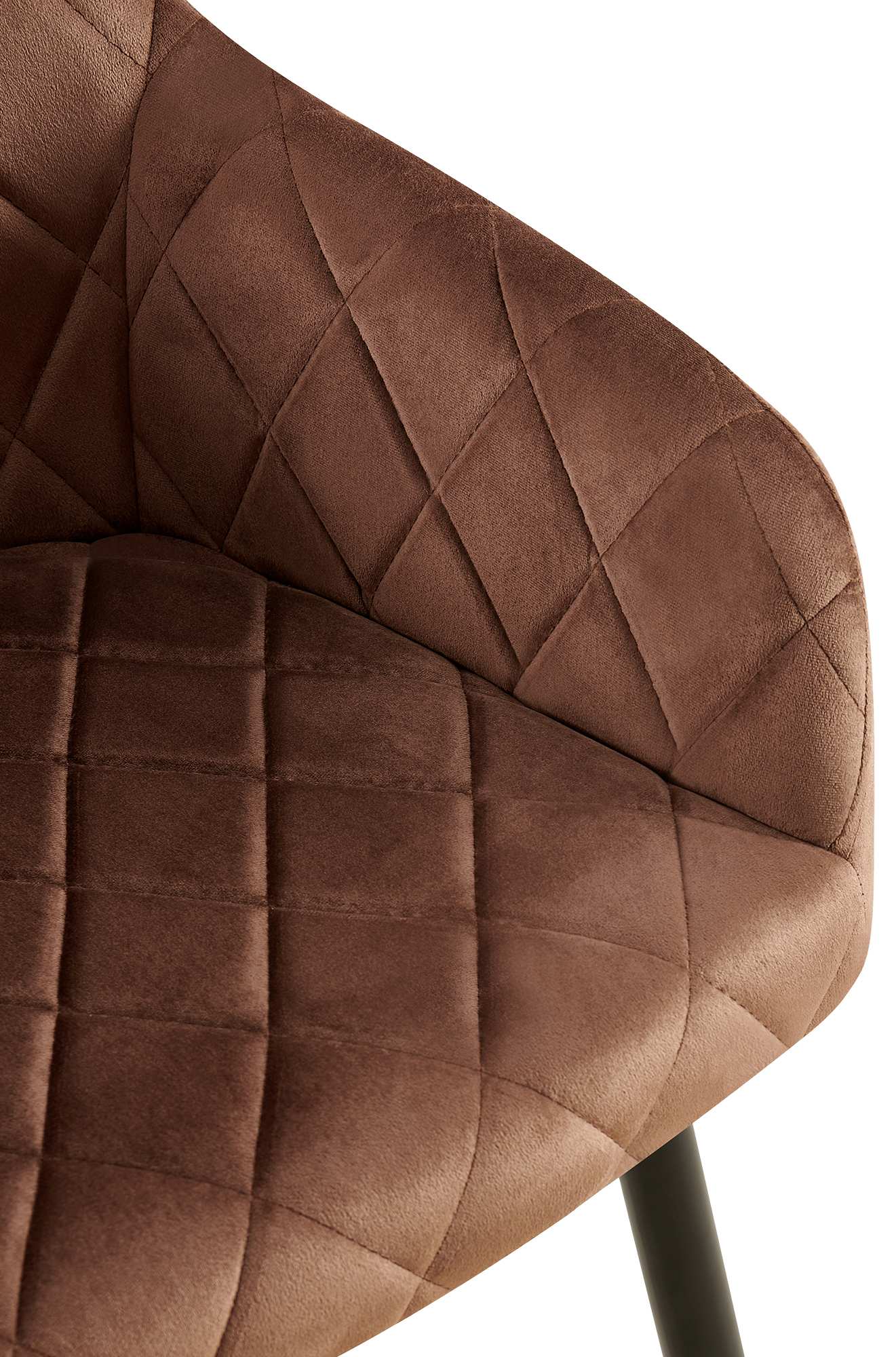 Luxusní jídelní židle Monett s pohodlným sametovým potahem a prošívaným vzorem. Stabilní kovový rám s nosností až 120 kg zaručuje komfortní sezení v kuchyni, jídelně či obýváku po dlouhou dobu.