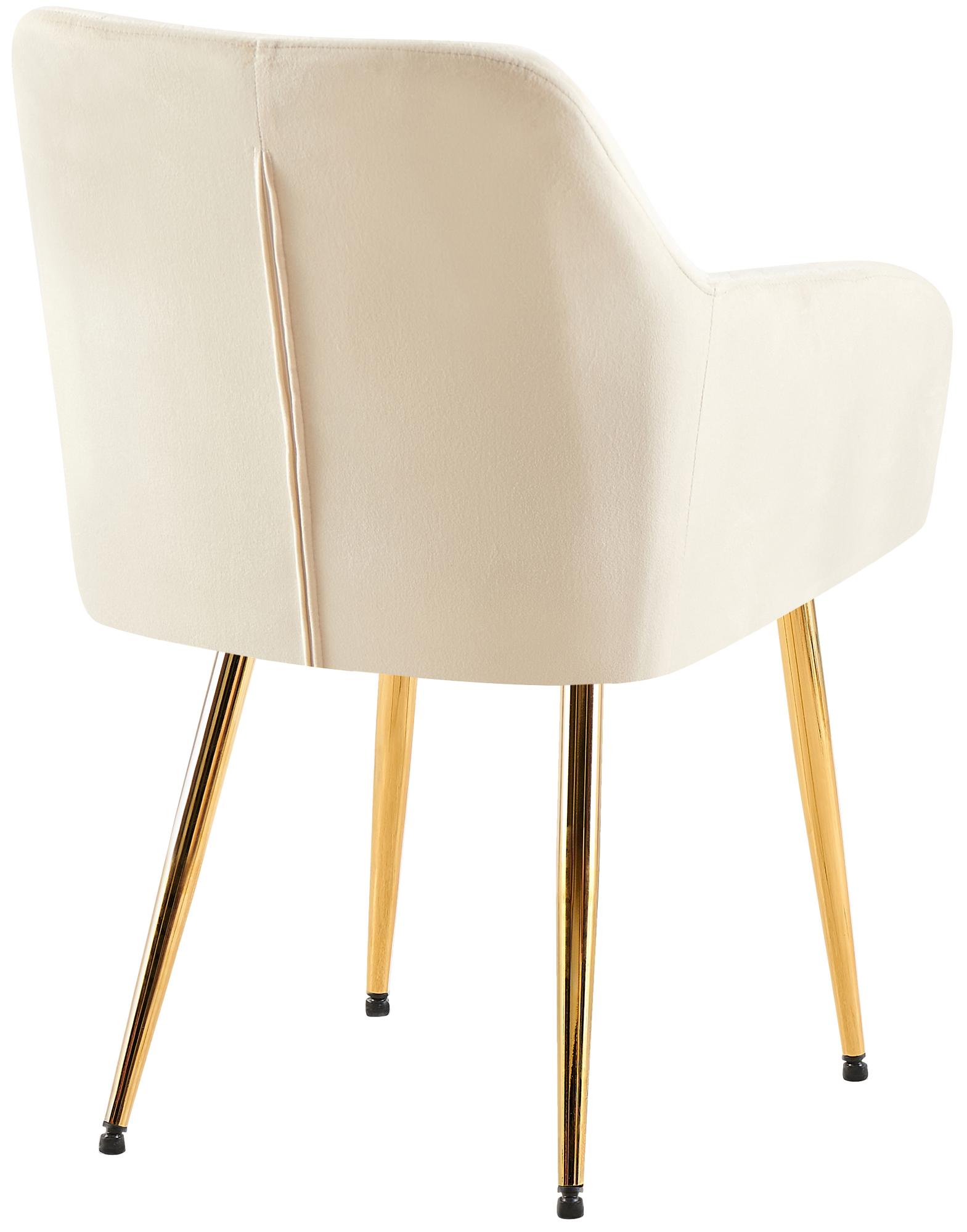 Luxusní jídelní židle Monett s pohodlným sametovým potahem a prošívaným vzorem. Stabilní kovový rám s nosností až 120 kg zaručuje komfortní sezení v kuchyni, jídelně či obýváku po dlouhou dobu.