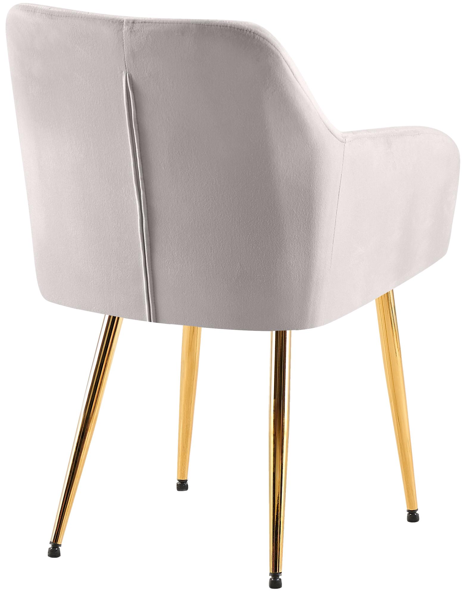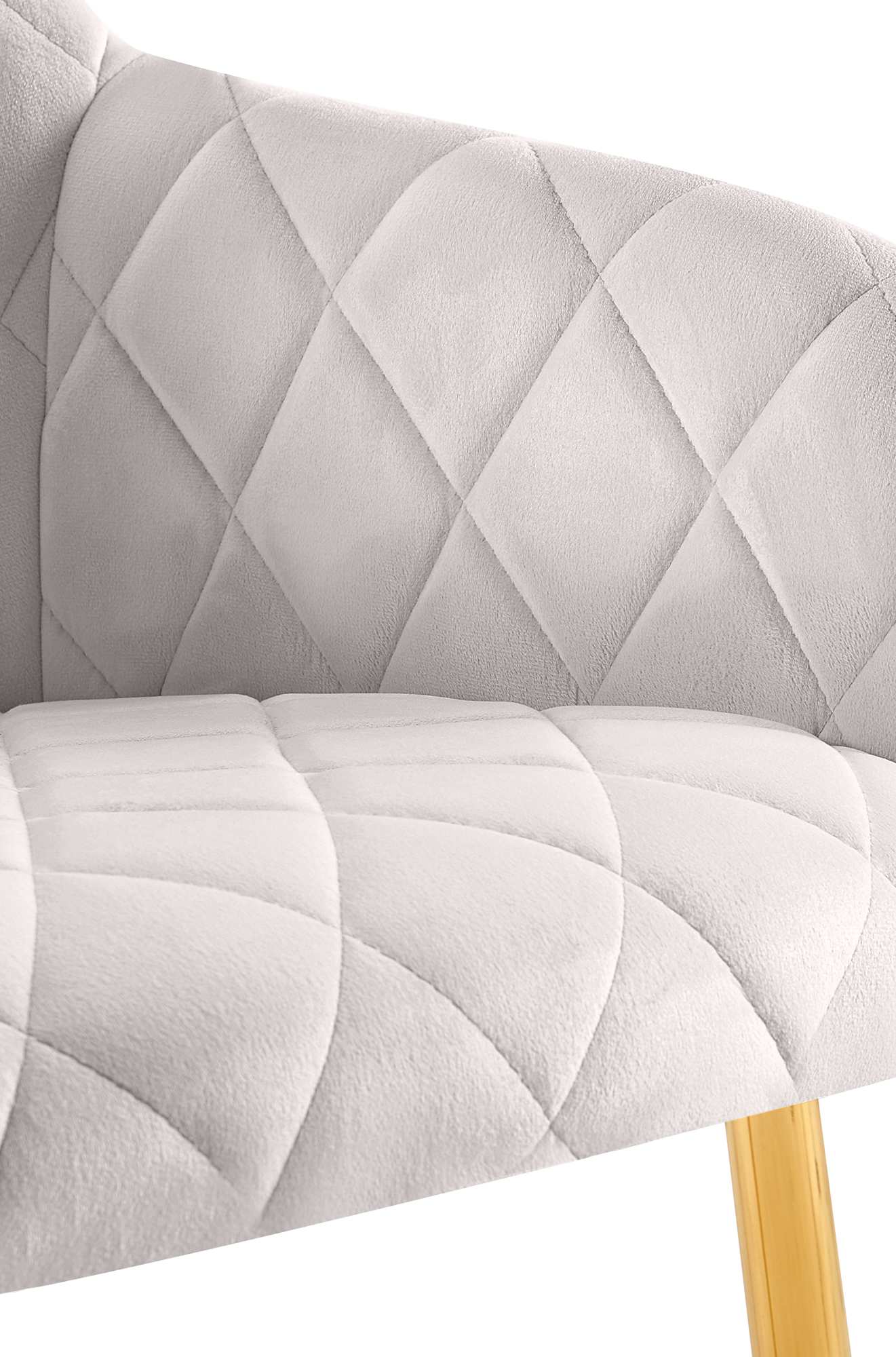 Luxusní jídelní židle Monett s pohodlným sametovým potahem a prošívaným vzorem. Stabilní kovový rám s nosností až 120 kg zaručuje komfortní sezení v kuchyni, jídelně či obýváku po dlouhou dobu.