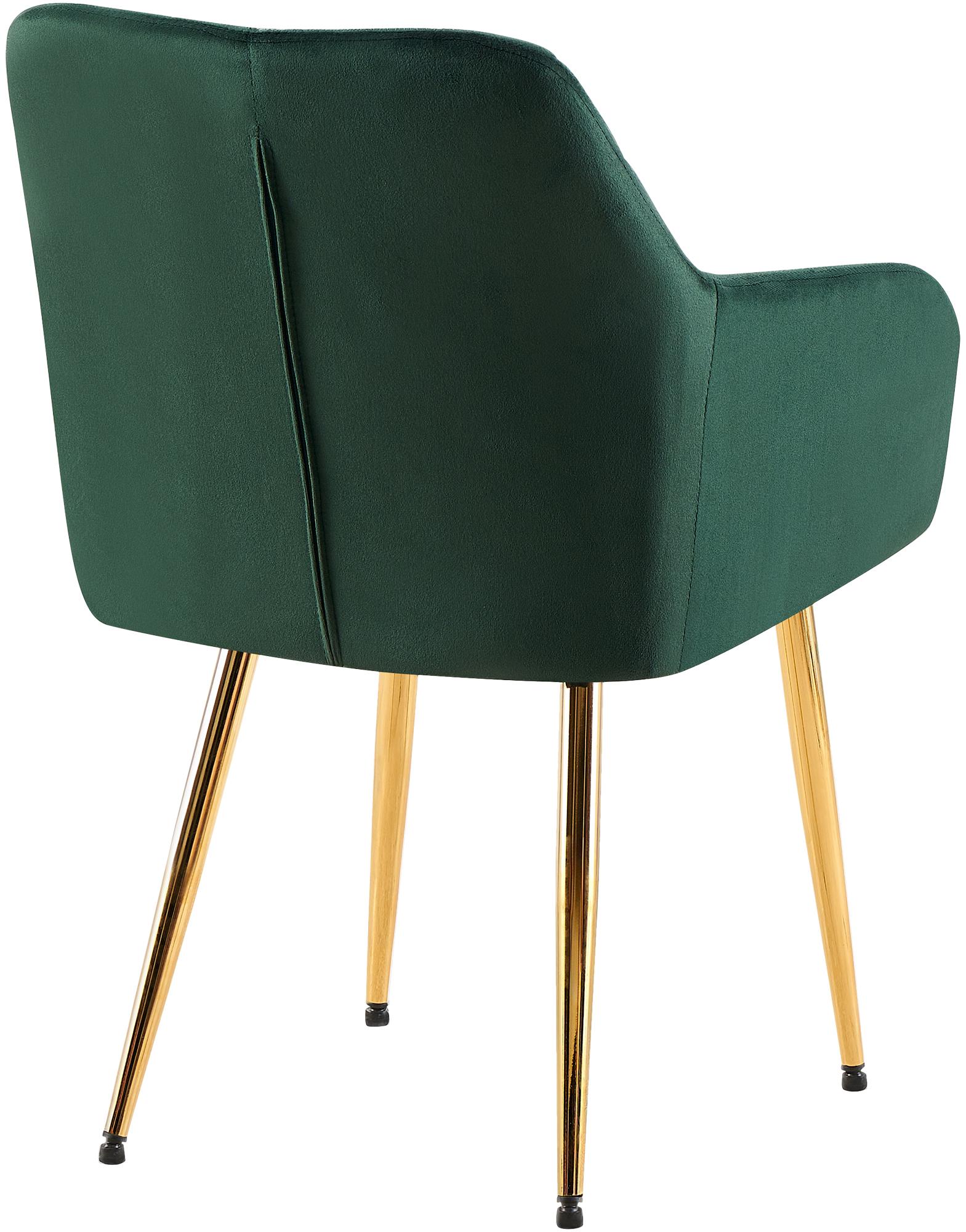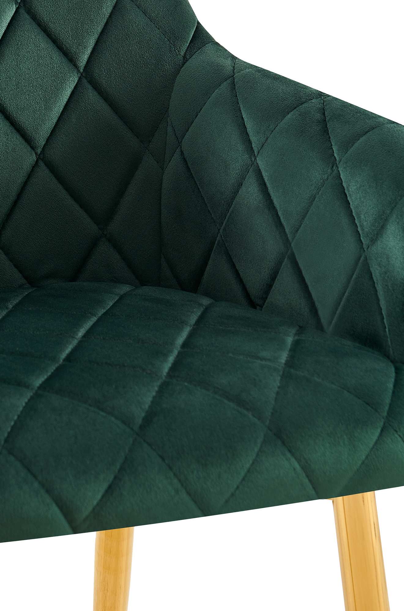 Luxusní jídelní židle Monett s pohodlným sametovým potahem a prošívaným vzorem. Stabilní kovový rám s nosností až 120 kg zaručuje komfortní sezení v kuchyni, jídelně či obýváku po dlouhou dobu.