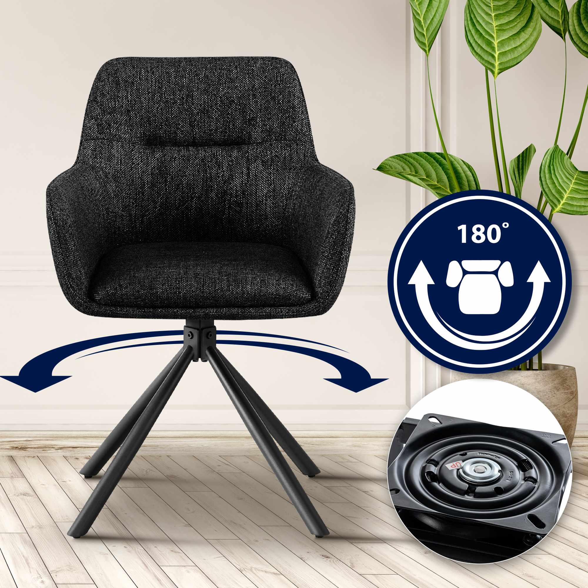Otočný mechanismus autoback zajišťuje, že sedák jídelní židle lze otáčet v rozsahu 180 stupňů, což poskytuje dodatečnou volnost pohybu.