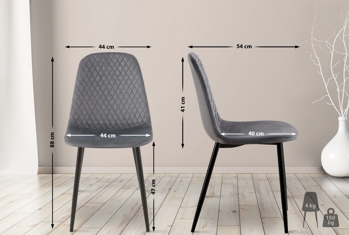 Židle Giverny jsou pohodlné a přitom stylové sezení pro každodenní použití. Sedák je potažen látkou se snadnou údržbou a má atraktivní vzhled. Sedadla jsou navíc zdobena dekorativním prošíváním. Díky modernímu 4nohému kovovému rámu vypadají tyto židle dobře při každé příležitosti. Pod nohama jsou také chrániče podlahy, které zabraňují poškrábání podlahy. Tyto čalouněné židle dodávají moderní šmrnc a skvěle doplní každé obytné prostředí.