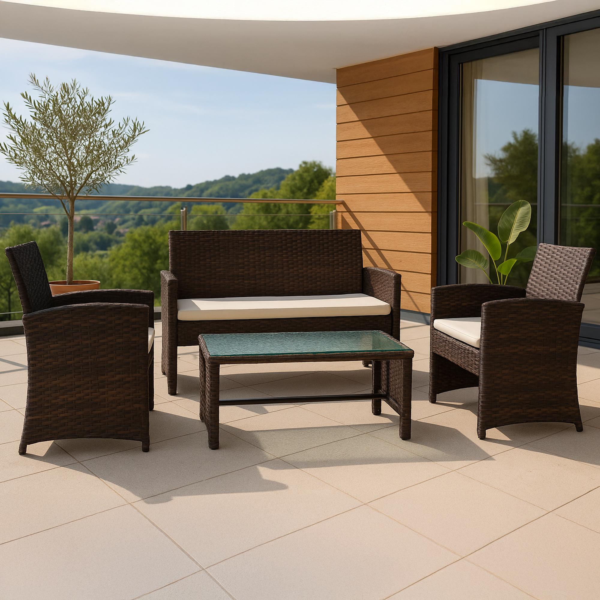Souprava Toruba poskytuje místo pro čtyři osoby a sestává z odolného PE-ratanu a robustní oceli. Pohodlné sedací polštáře zvyšují komfort a jsou snadno udržovatelné.