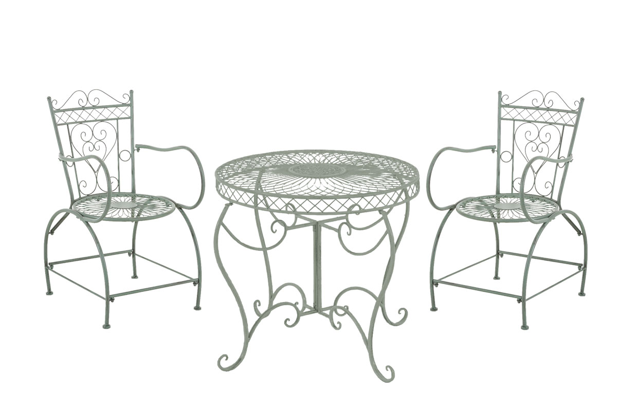 Elegantní souprava 2 kovových židlí a stolu.