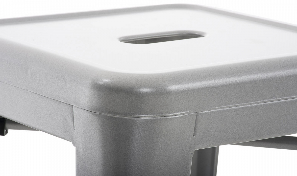 Židle vyrobená z kovu s práškovou barvou poskytuje skutečnou odolnost. Vysoký stupeň stability zajišťuje příčná výztuž po sedací plochou a mezi nohama židle, které zároveň slouží jako pohodlné opěrky pro nohy.