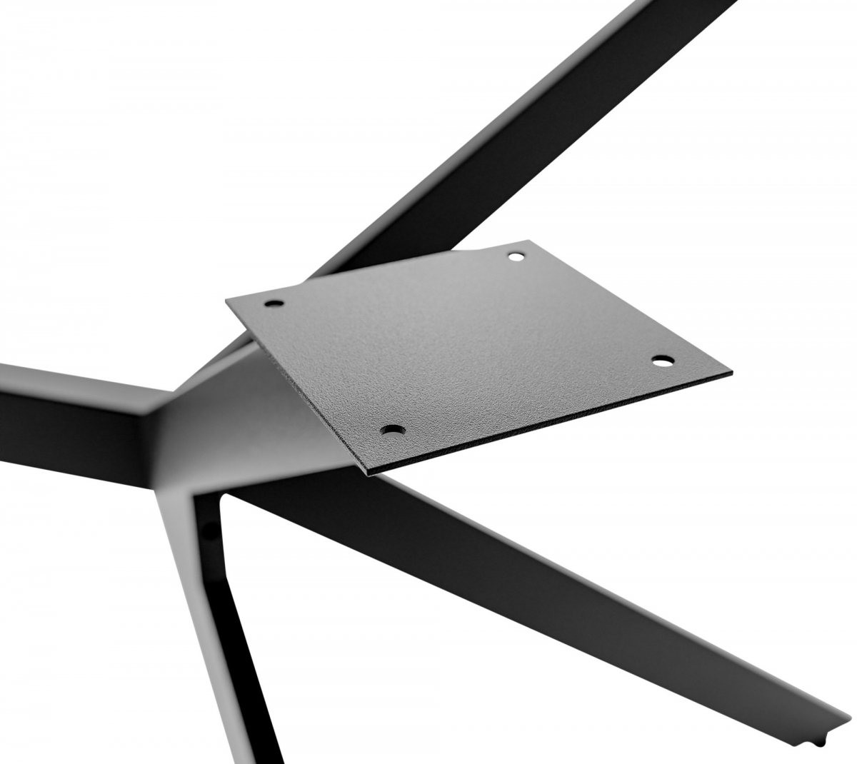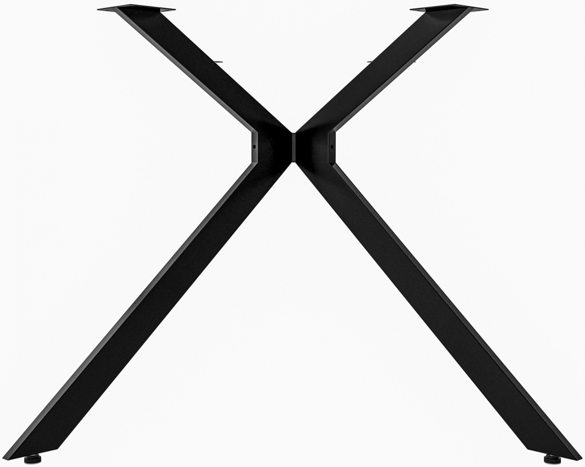 Moderní stolní nohy Cascada v průmyslovém stylu z robustní oceli s černým práškovým nástřikem. Čtyřnohý rám bez desky umožňuje DIY projekty, nabízí stabilitu o nosnosti 120 kg a jednoduché složení pro všestranné využití v interiéru.