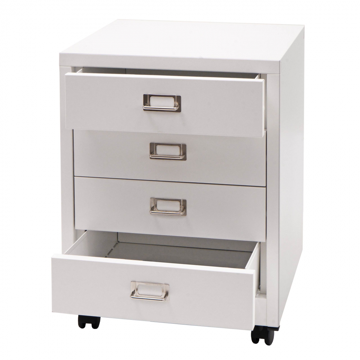 - Tento jednoduchý kancelářský kontejner nesmí chybět ve vaší pracovně. Čtyři zásuvky z oceli nabízejí dostatek místa například pro kancelářské potřeby, počítačové příslušenství a dokumenty, které nemají co hledat na vašem stole.