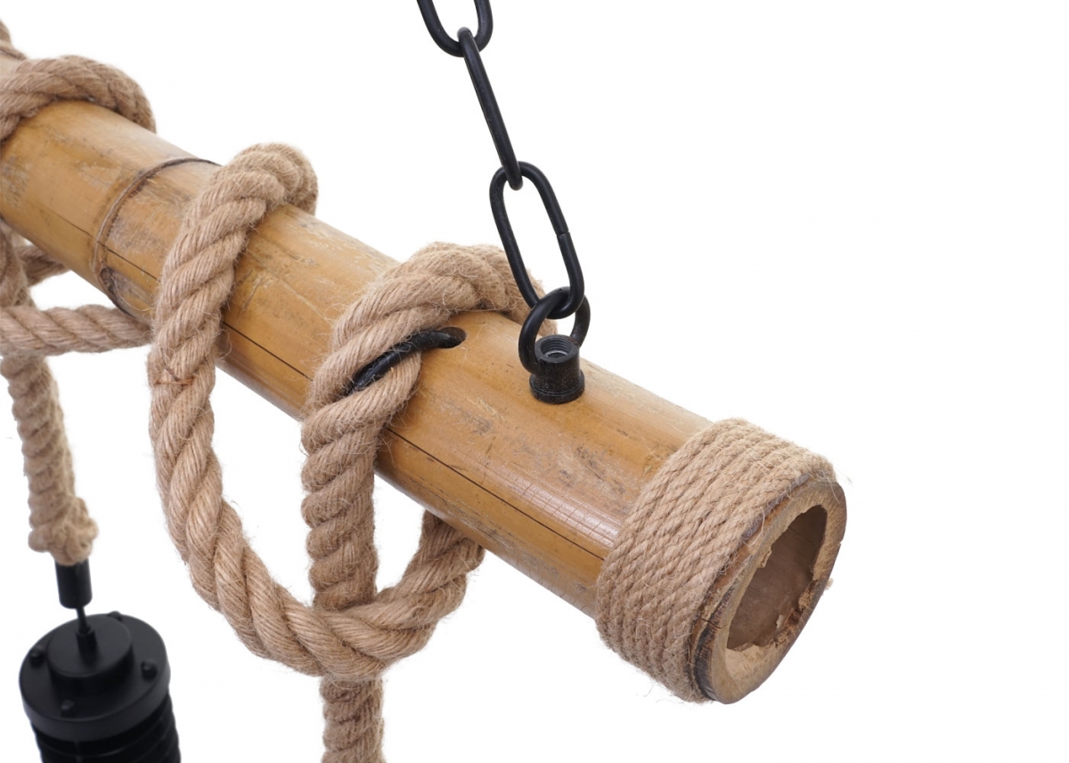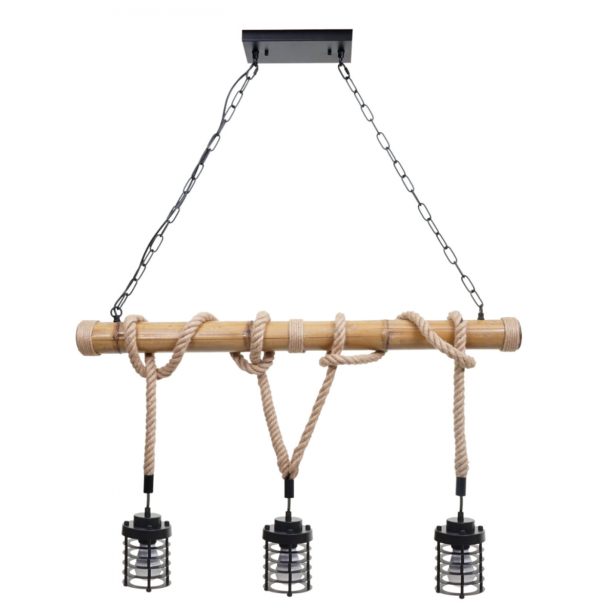 Stylové stropní svítidlo v industriálním stylu se 3 stínítky z kovu a bambusovou tyčí. Extravagantní kombinace materiálů a teplá barva bambusu dodají vaší domácnosti trendy vzhled a příjemné osvětlení.