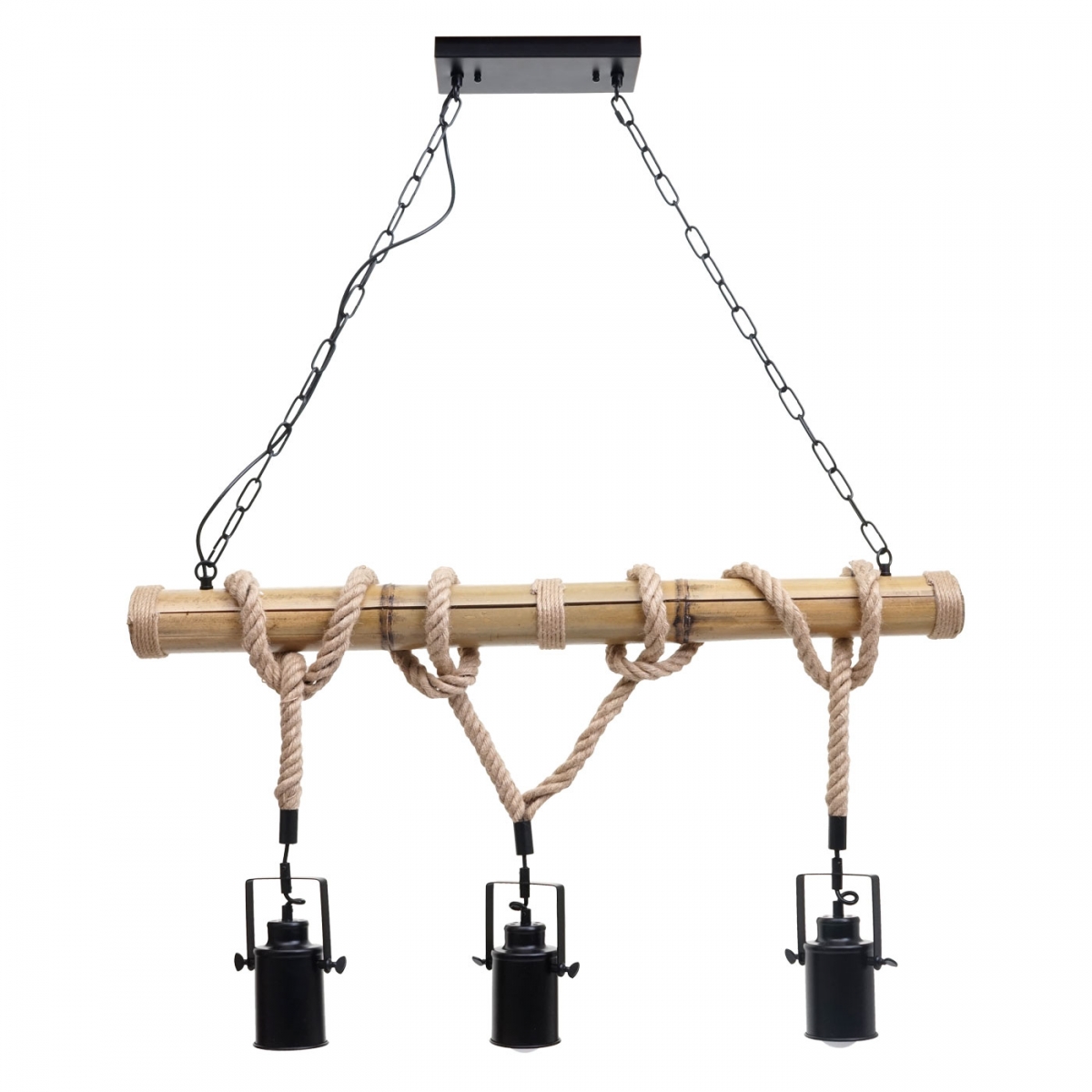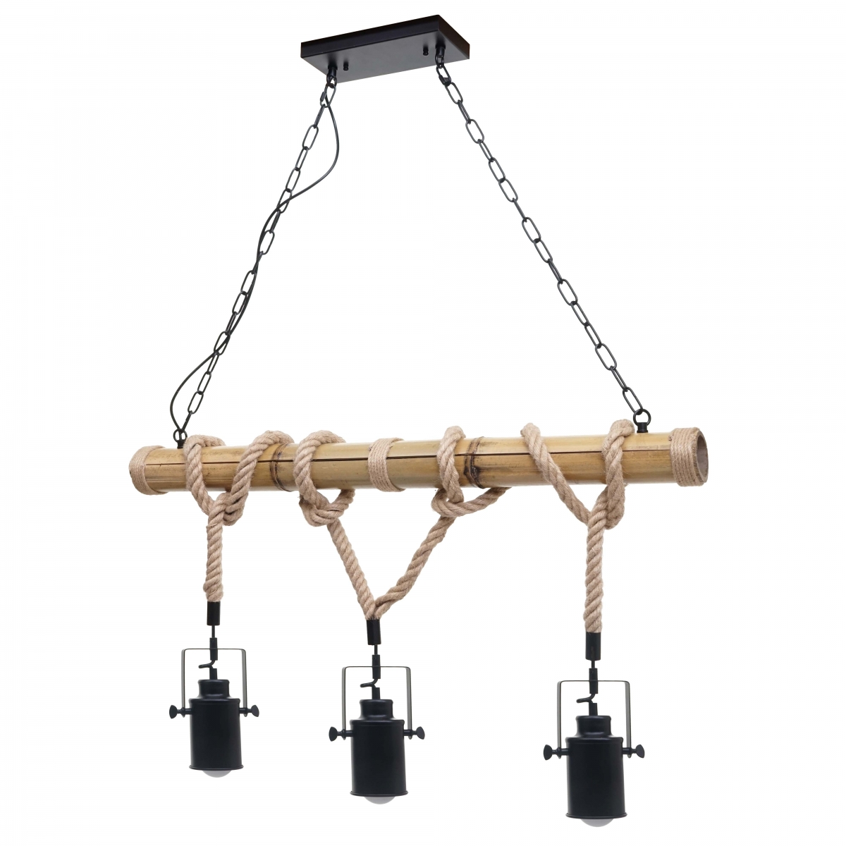 Trendy stropní svítidlo v industriálním stylu se 3 stínítky z kovu a bambusovou tyčí. Extravagantní kombinace materiálů rozzáří každý interiér teplým světlem a dodá mu stylový nádech. Vhodné pro žárovky E27.
