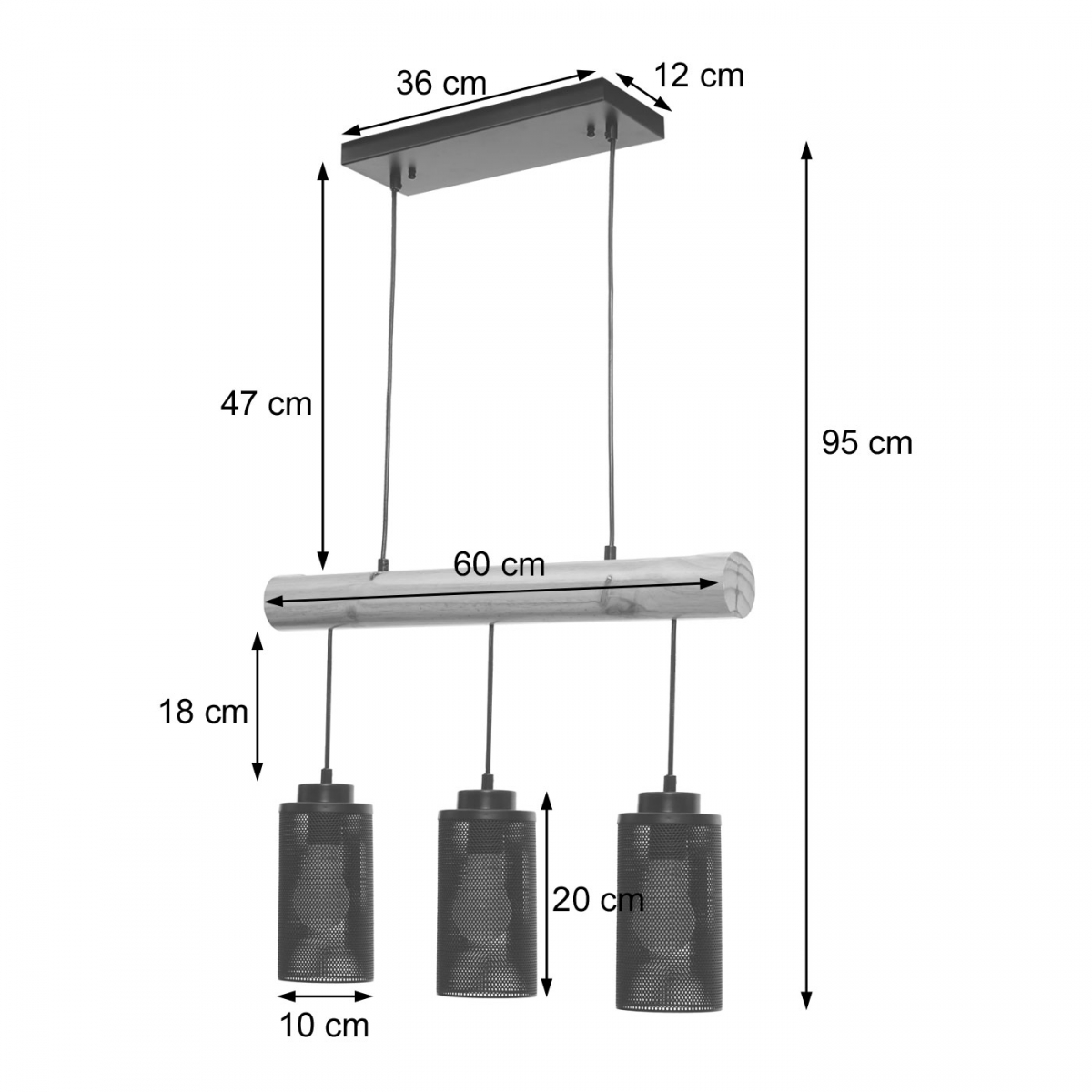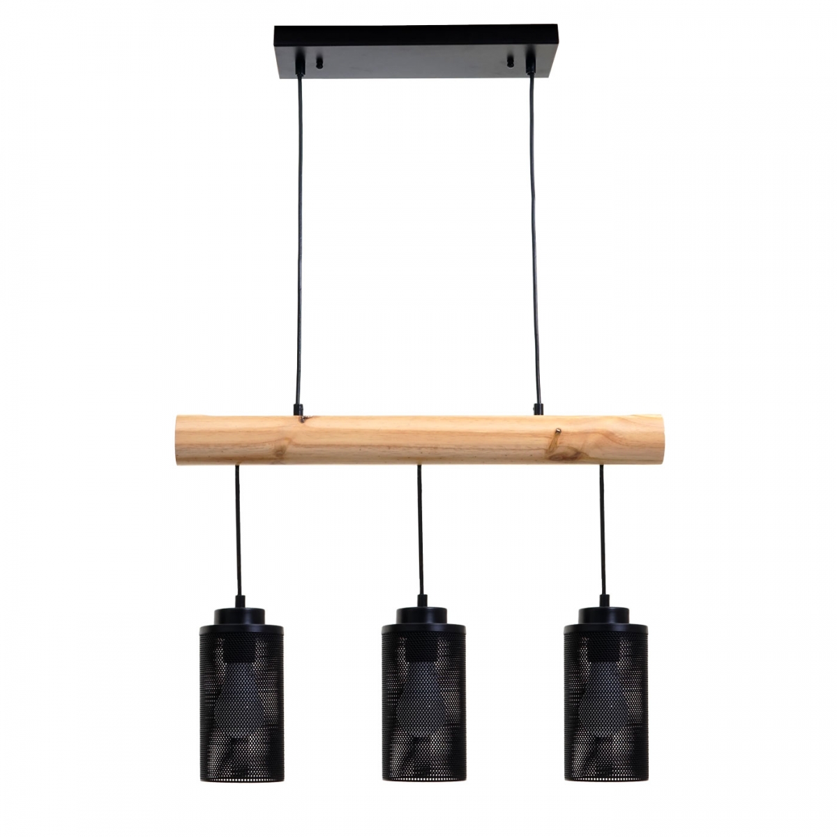 Vintage stropní závěsné svítidlo s industriálním designem kombinuje dřevo kaučukovníku a kovové stínítko. Ideální do bytu, kavárny či restaurace, poskytuje stylový vzhled a dostatečné osvětlení se 3 žárovkami E27.