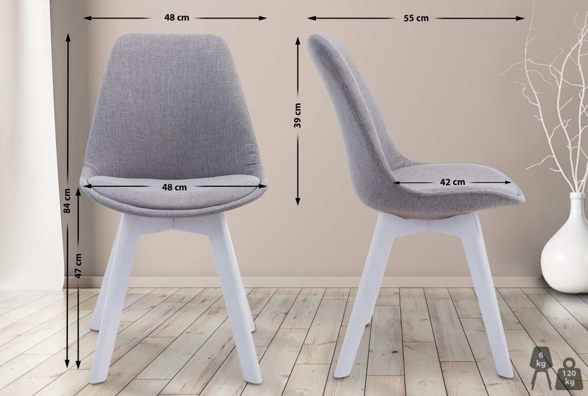 Skořepina sedáku je vyrobena z odolného plastu. Příjemné čalounění s látkovým potahem poskytuje pohodlné sezení. 4-nohá základna z dřeva přináší teplo a eleganci.