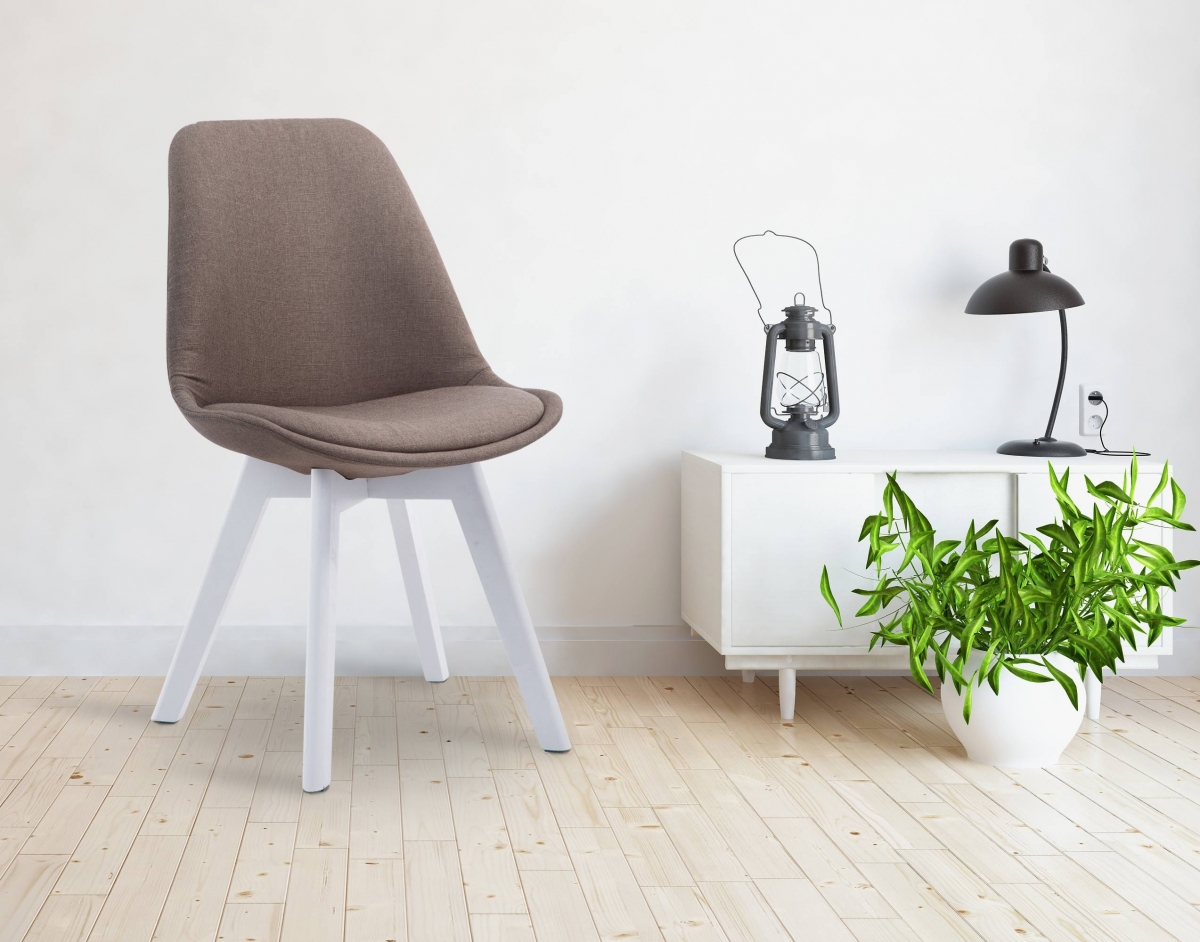 Elegantní židle s látkovým čalouněním a dřevěnou konstrukcí. Kombinuje pohodlí a stylový design – plastová skořepina, měkké čalounění a 4 dřevěné nohy vytvářejí atraktivní kousek nábytku do každé místnosti.