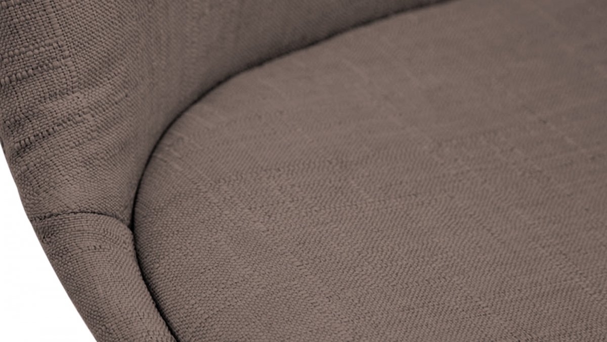 Skořepina sedáku je vyrobena z odolného plastu. Příjemné čalounění s látkovým potahem poskytuje pohodlné sezení. 4-nohá základna z dřeva přináší teplo a eleganci.