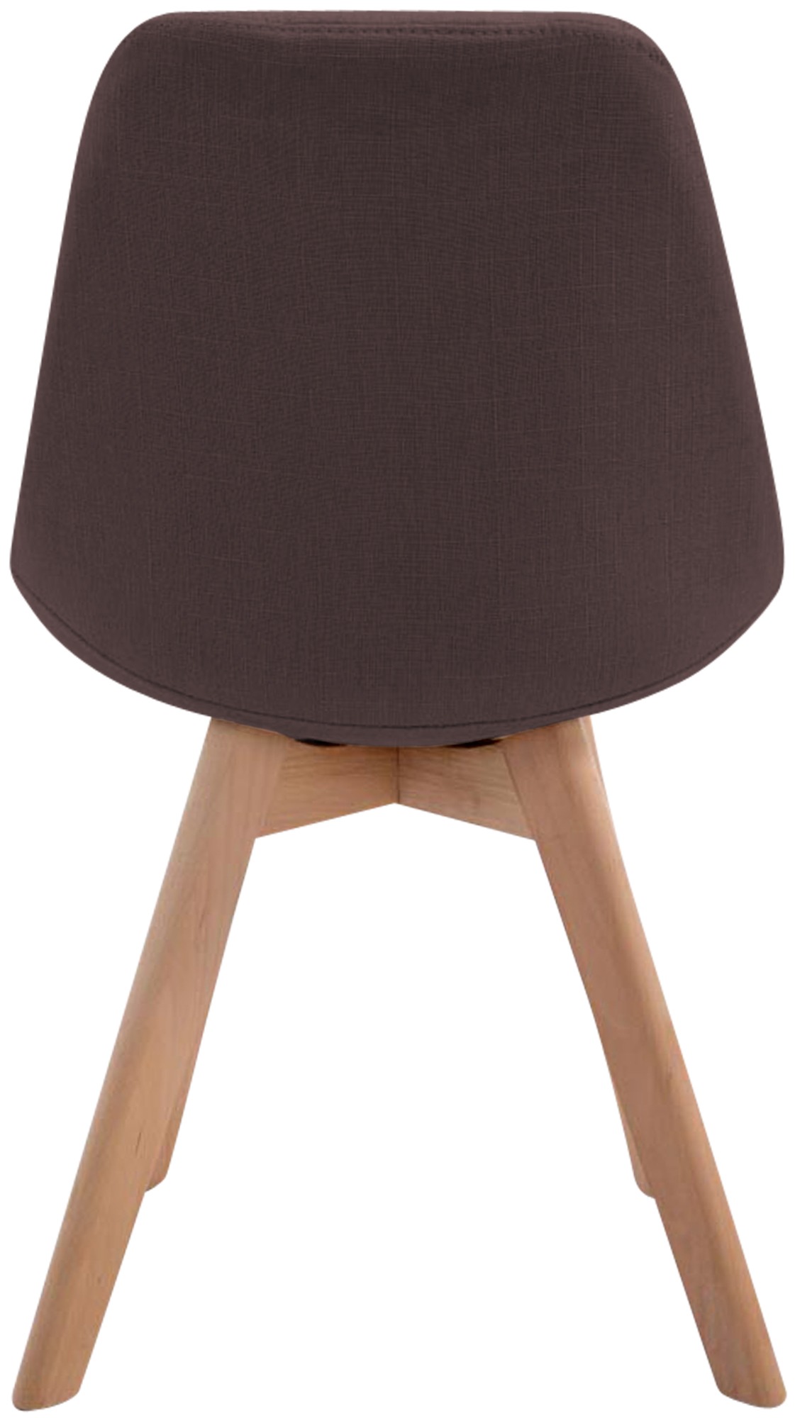 Skořepina sedáku je vyrobena z odolného plastu. Příjemné čalounění s látkovým potahem poskytuje pohodlné sezení. 4-nohá základna z dřeva přináší teplo a eleganci.