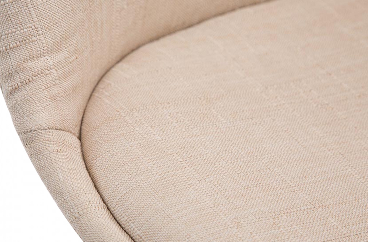 Skořepina sedáku je vyrobena z odolného plastu. Příjemné čalounění s látkovým potahem poskytuje pohodlné sezení. 4-nohá základna z dřeva přináší teplo a eleganci.