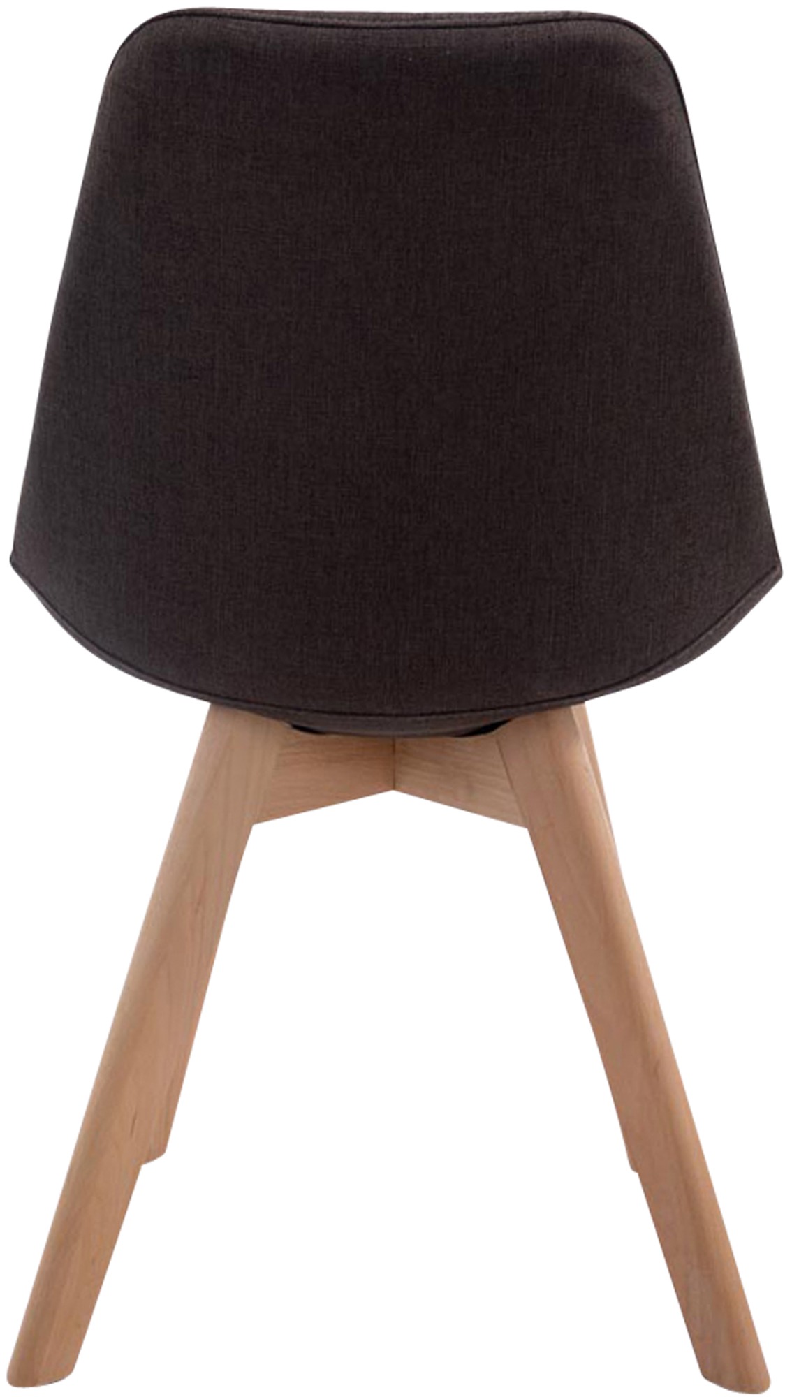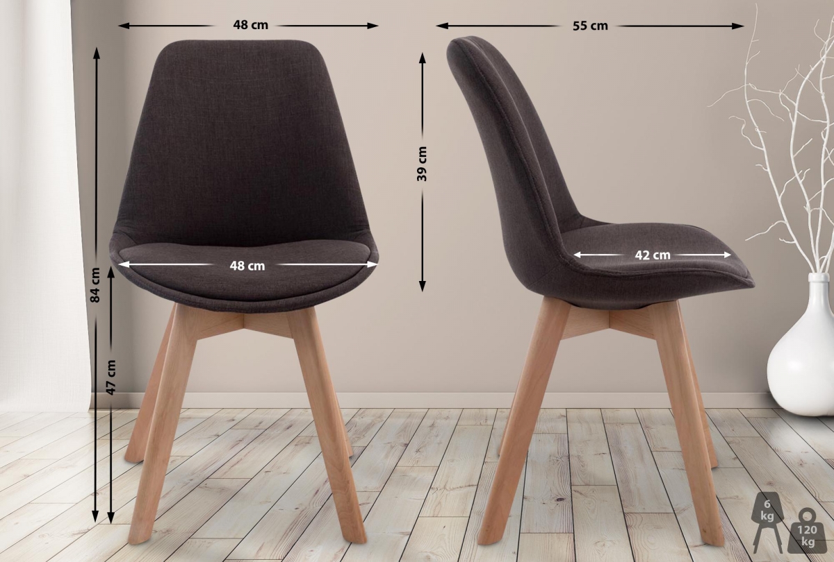 Skořepina sedáku je vyrobena z odolného plastu. Příjemné čalounění s látkovým potahem poskytuje pohodlné sezení. 4-nohá základna z dřeva přináší teplo a eleganci.