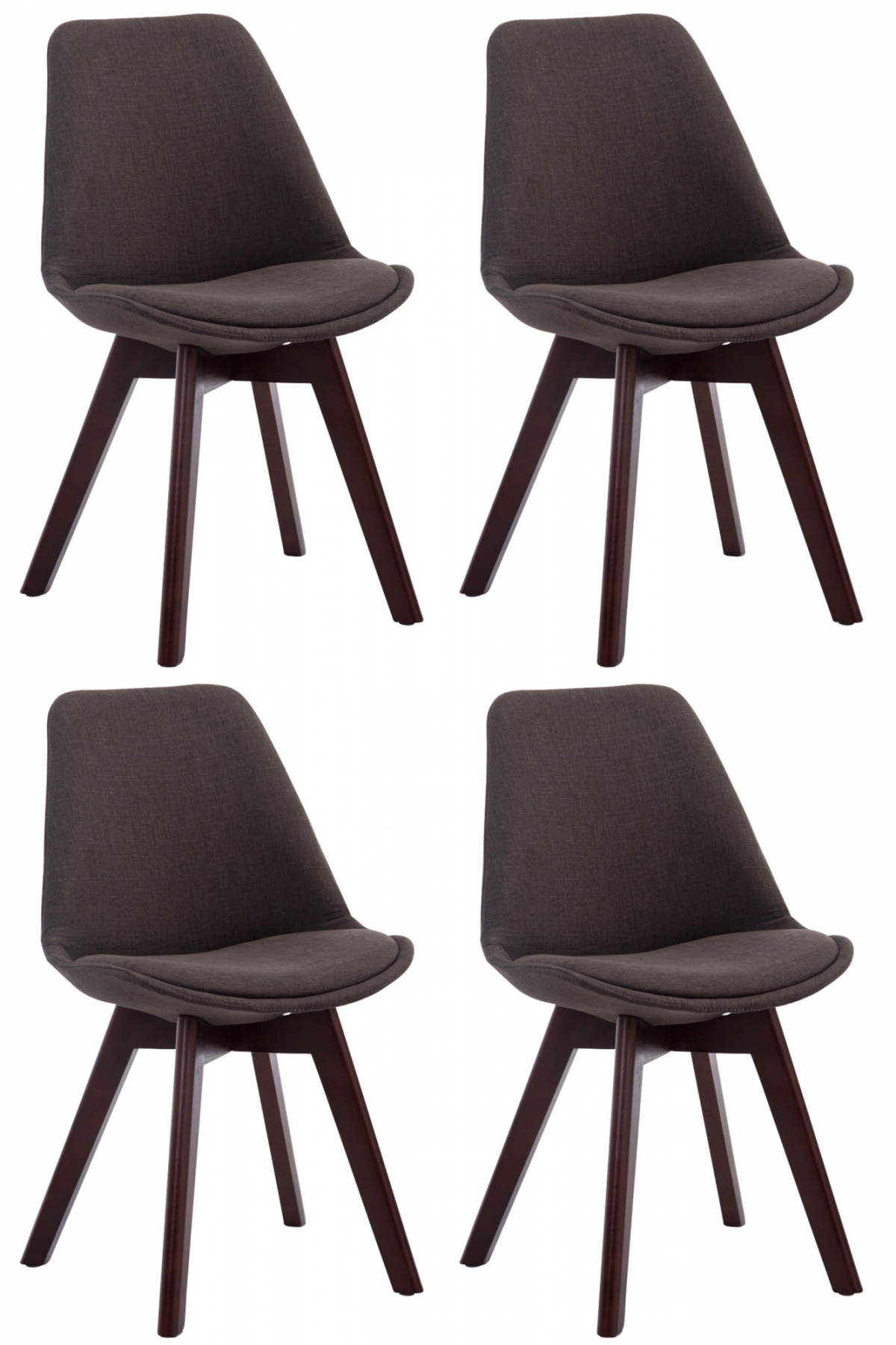 Skořepina sedáku je vyrobena z odolného plastu. Příjemné čalounění s látkovým potahem poskytuje pohodlné sezení. 4-nohá základna z dřeva přináší teplo a eleganci.