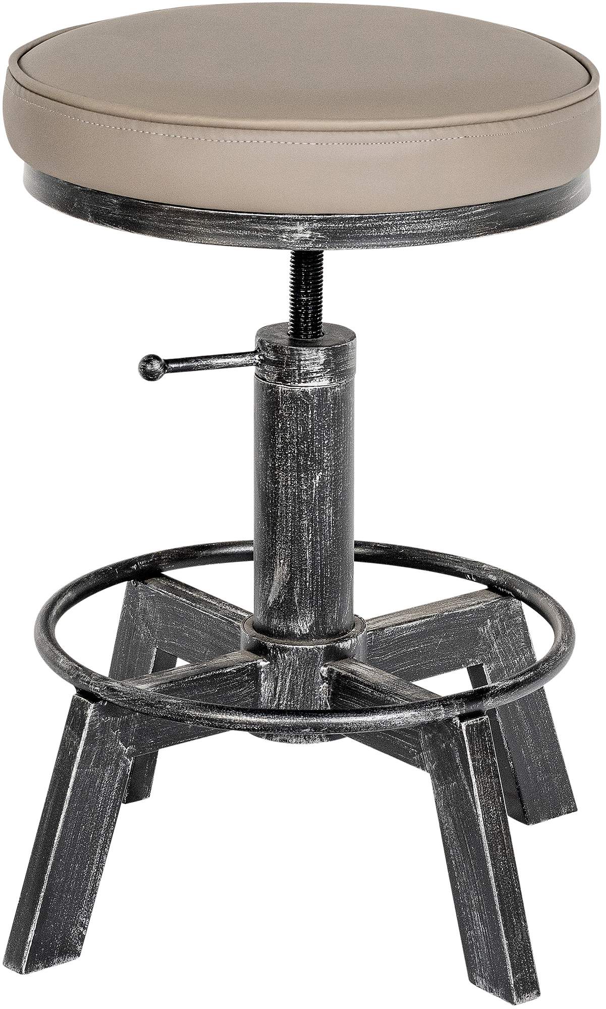 Nastavitelná židle Destin s průmyslovým designem nabízí všestranné využití v každé místnosti. Výškově nastavitelná od 44 do 63 cm, s hrubě polstrovaným sedátkem z umělé kůže a kovovou konstrukcí unese až 250 kg. Ideální jako barová či jídelní židle.