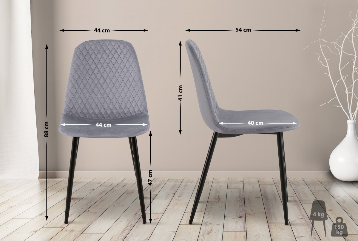 Jídelní židle Dijon - samet, kovové nohy černé - Šedá
