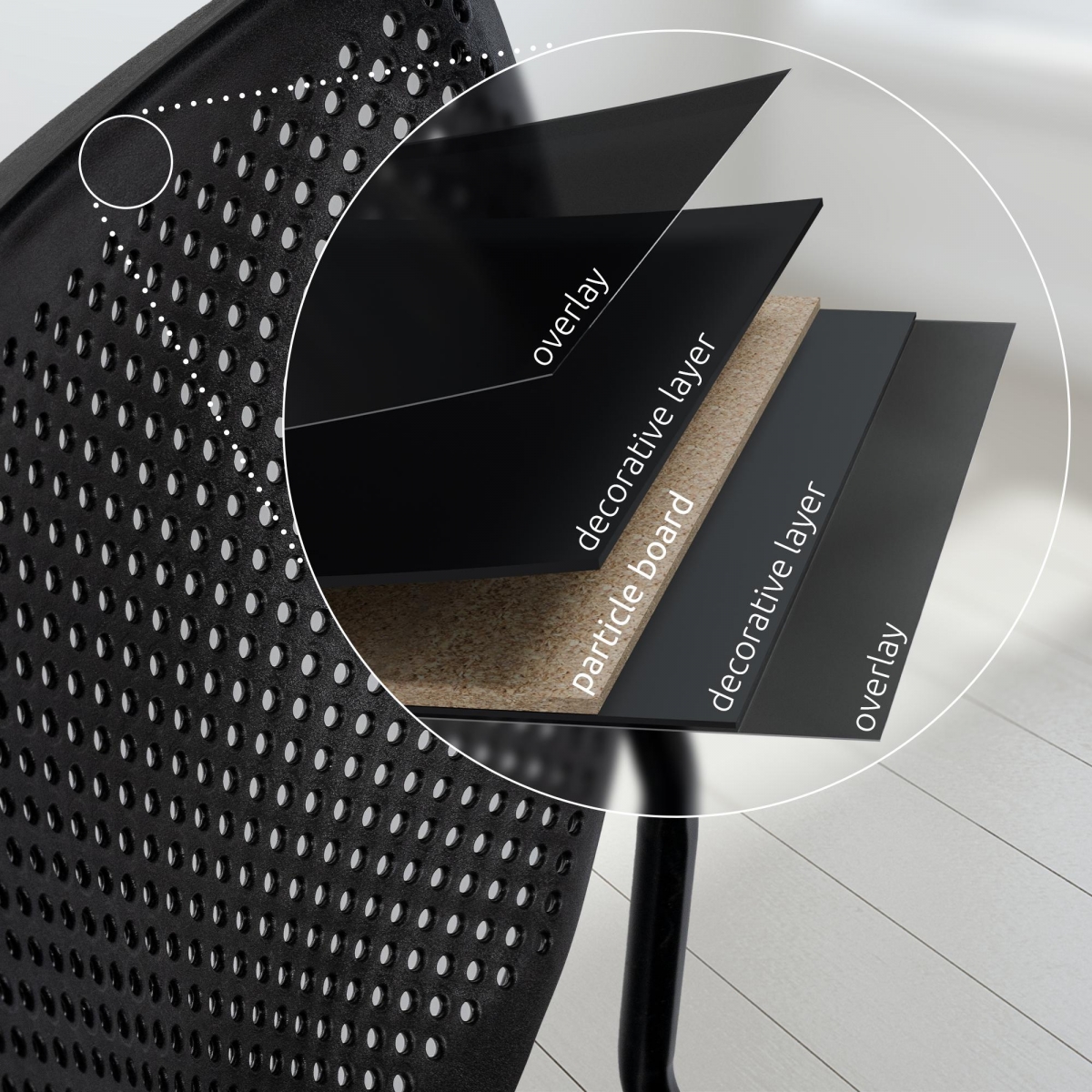 opěradlo s povrchem HPL