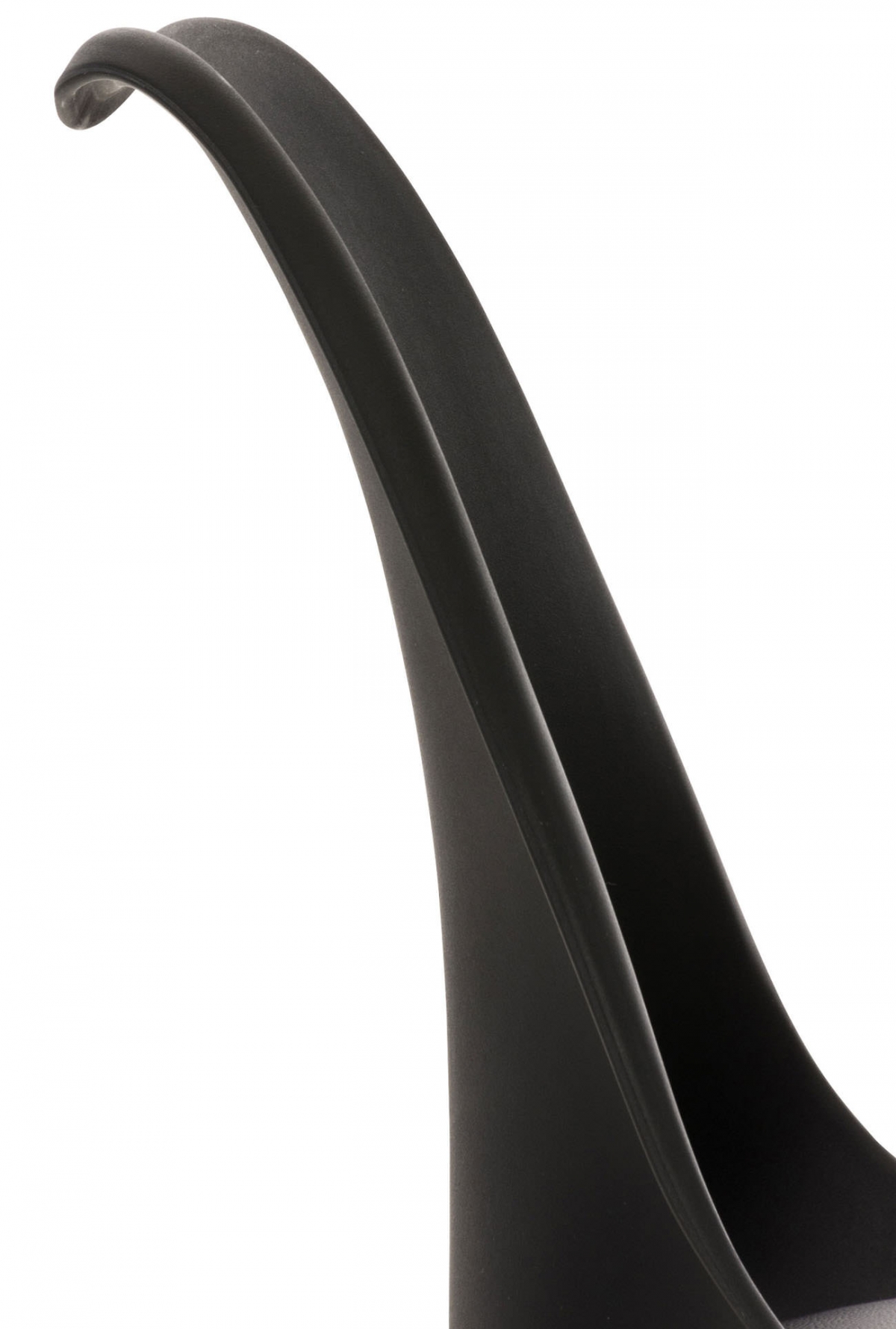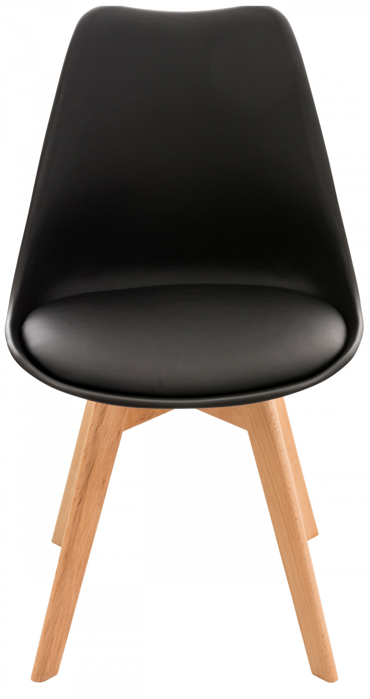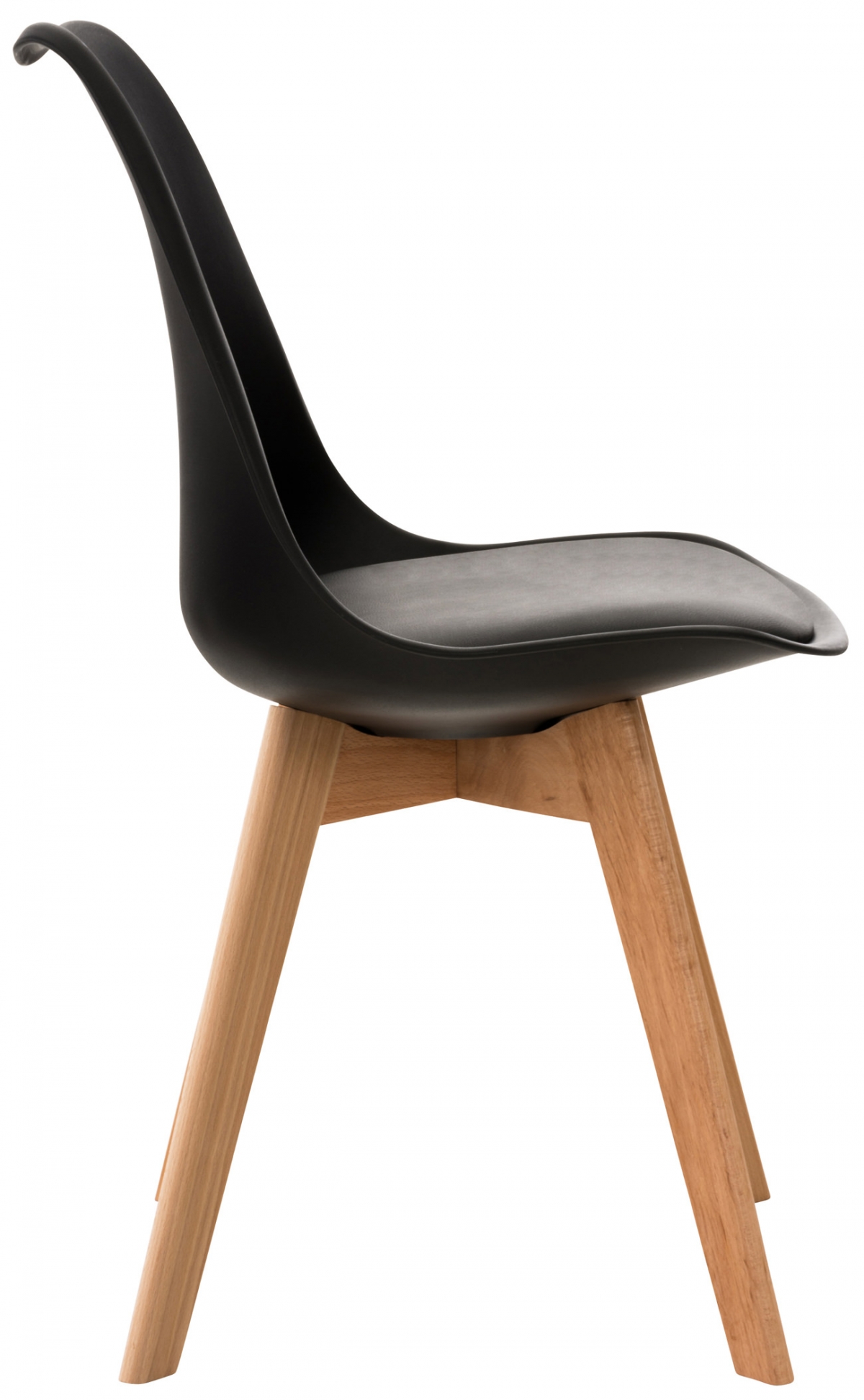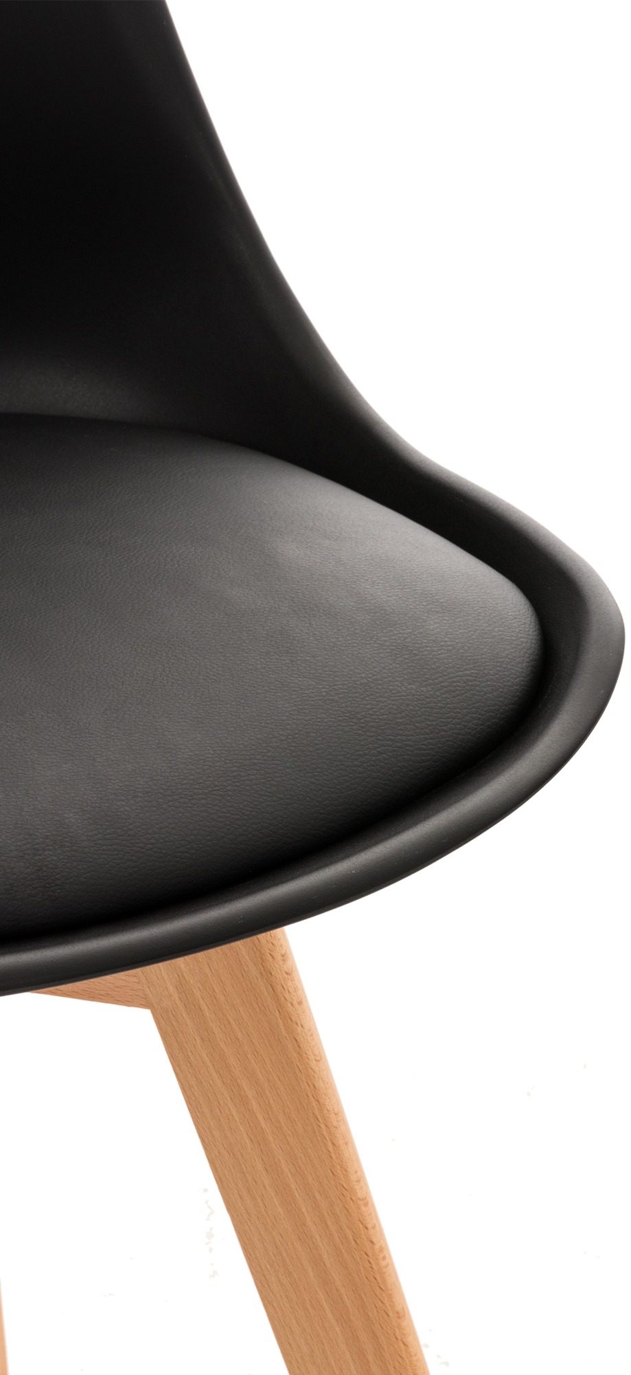 Elegantní židle s křivkami kombinuje plastové opěradlo a dřevěné nohy z buku. Pohodlné čalouněné sedátko z koženky a vysoké opěradlo zaručují komfort i při delším sezení. Rozměry: 49x83x50 cm, výška sedu 46 cm.