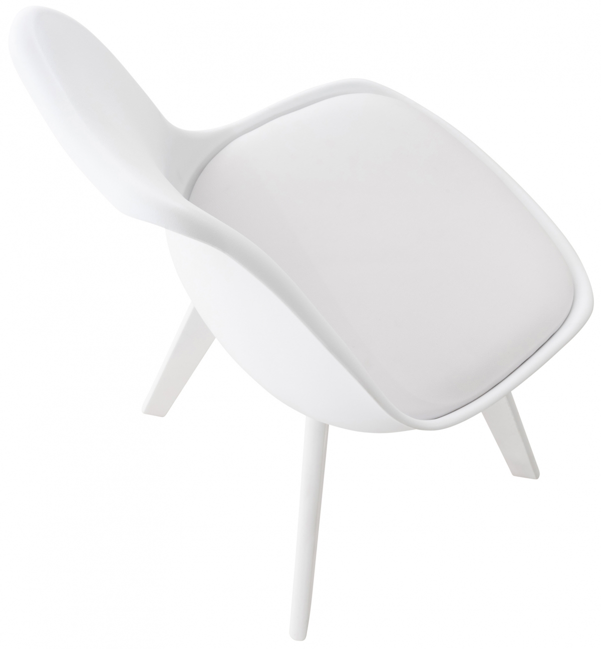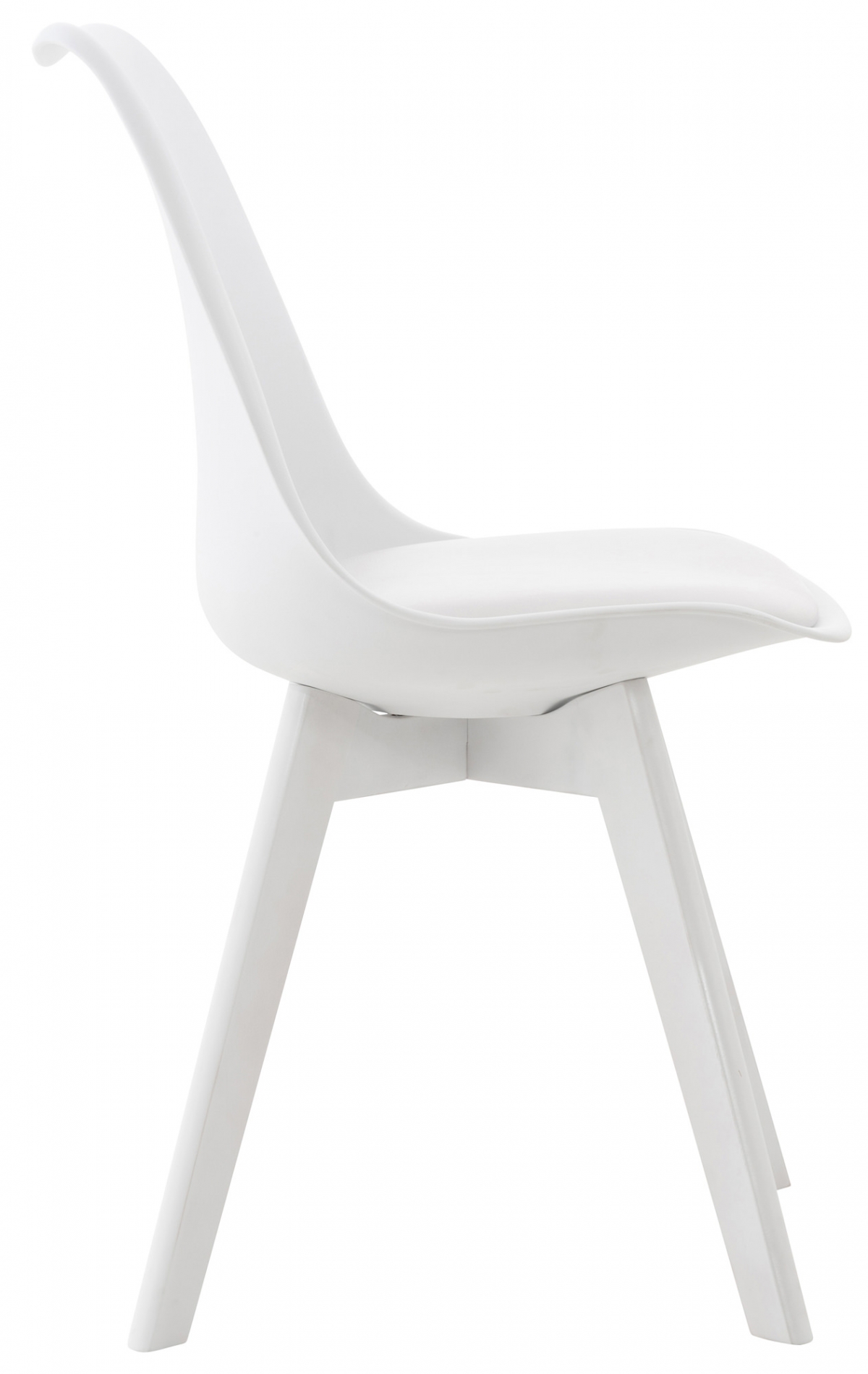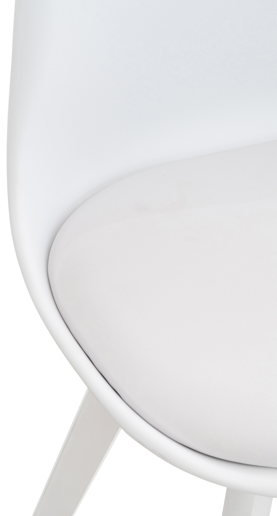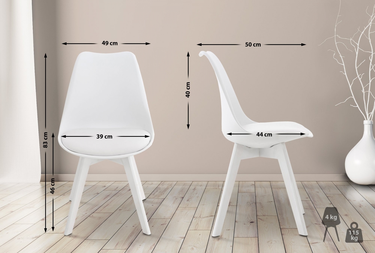 Elegantní židle s křivkami kombinuje plastové opěradlo a dřevěné nohy z buku. Pohodlné čalouněné sedátko z koženky a vysoké opěradlo zaručují komfort i při delším sezení. Rozměry: 49x83x50 cm, výška sedu 46 cm.