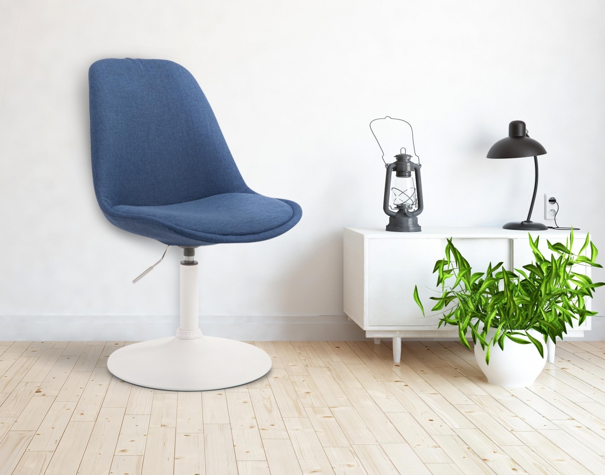 Efektní kombinace textilního potahu a matného černého rámu. Židle je výškově stavitelná a otočná o 360 °.