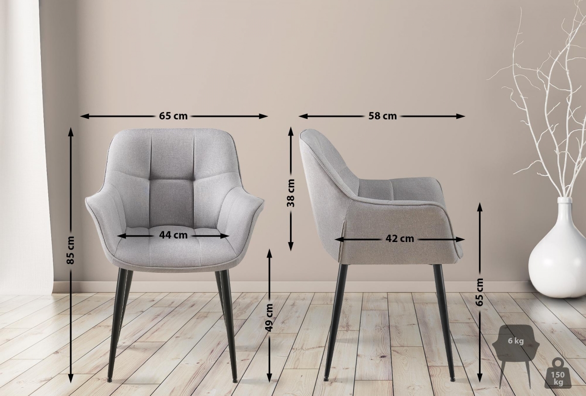 Ergonomicky tvarované sedátko a loketní opěrky zvyšují komfort sezení. Čtyři robustní kovové nohy v černé barvě dodávají čalouněné židli dobrou stabilitu a zároveň upoutají pozornost.