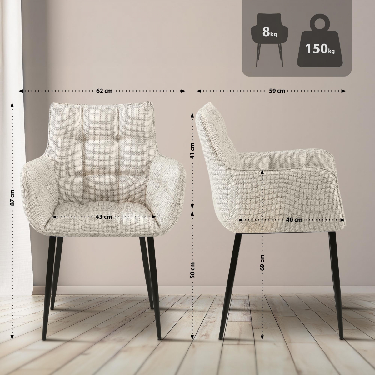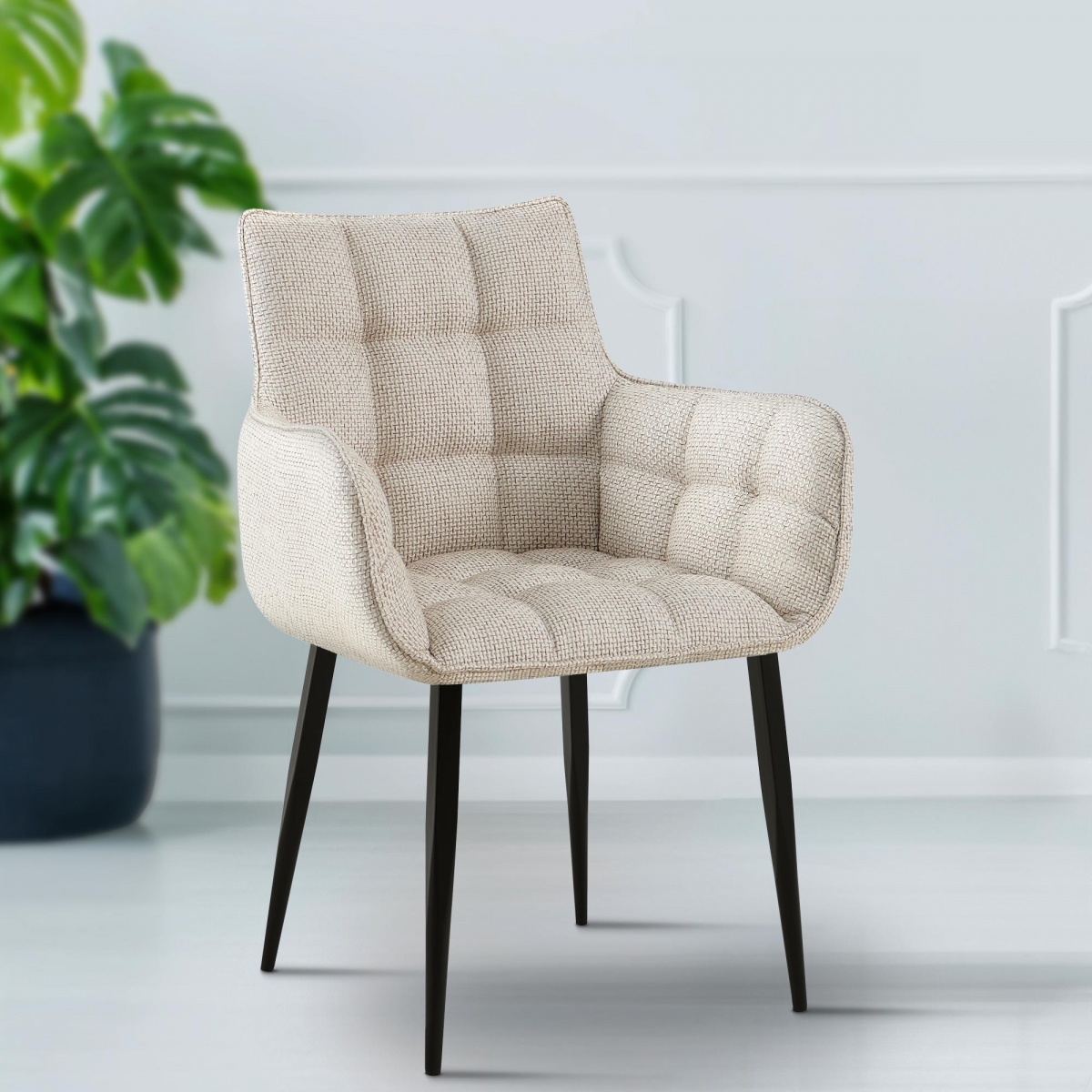 Luxusní jídelní židle Tirana s látkovým potahem nabízí vysoký komfort a stylový vzhled. Stabilní kovový rám, měkké polstrování a elegantní kostkovaný vzor dělají z této židle ideální volbu pro jídelnu, kuchyň či obývací pokoj.