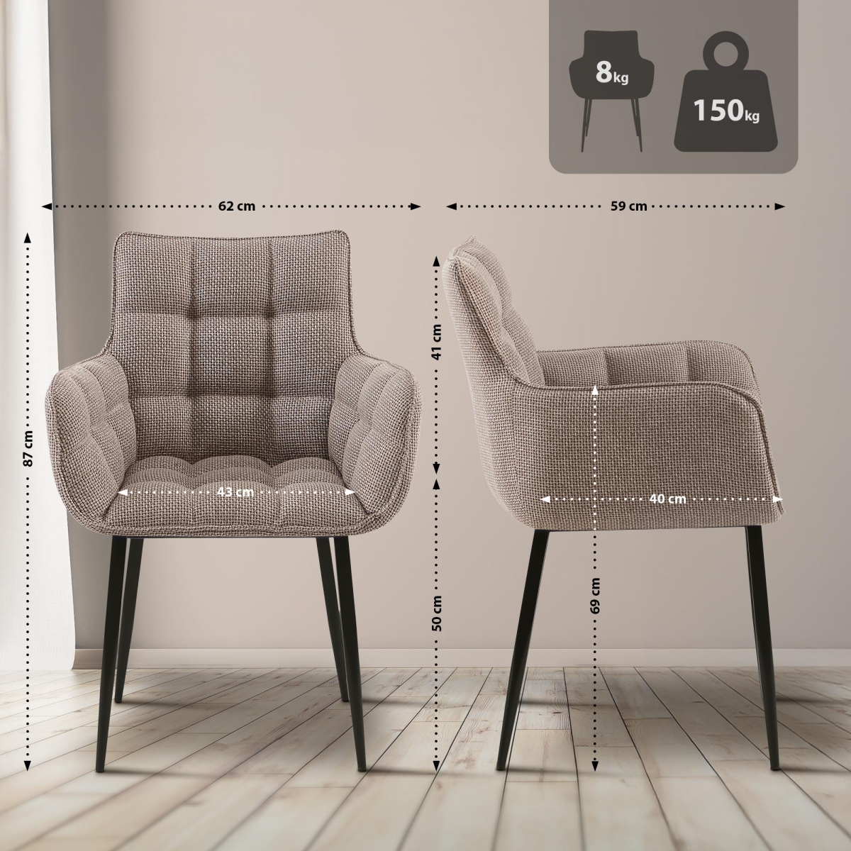 Luxusní jídelní židle Tirana s látkovým potahem nabízí vysoký komfort a stylový vzhled. Stabilní kovový rám, měkké polstrování a elegantní kostkovaný vzor dělají z této židle ideální volbu pro jídelnu, kuchyň či obývací pokoj.